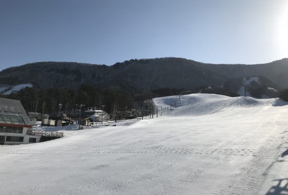 お天気に恵まれたゲレンデ。これから初日の滑走がスタート。インストラクターや先生方…