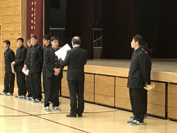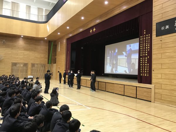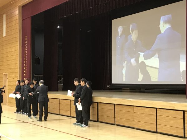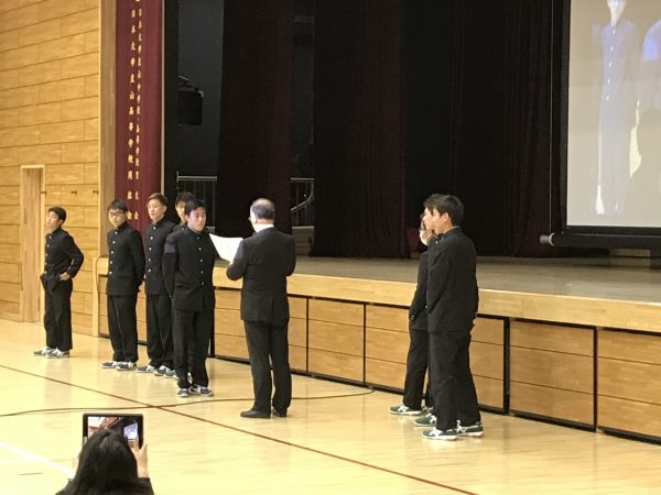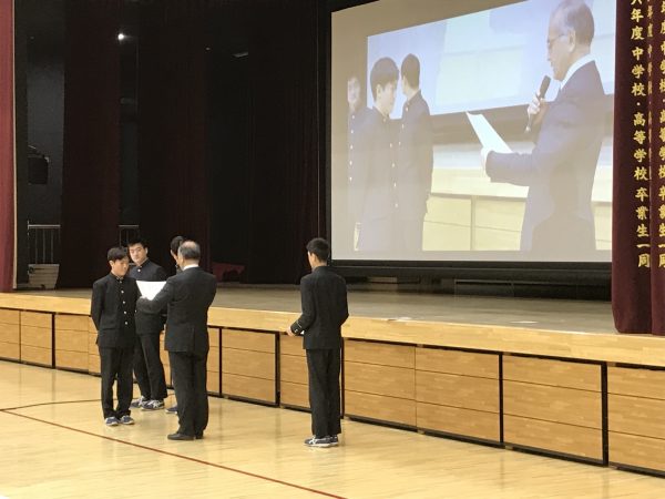 修了式にさきだち、各種表彰が行われました。今年度も全国制覇を果たした中学水泳部、高校水泳部、サッカーU16代表、卓球部などの表彰。地域貢献により吹奏楽部は感謝状を受領しました。今年度も生徒たちが活躍した一年でした。4月からの新年度。ますます元気に活躍して欲しいです。