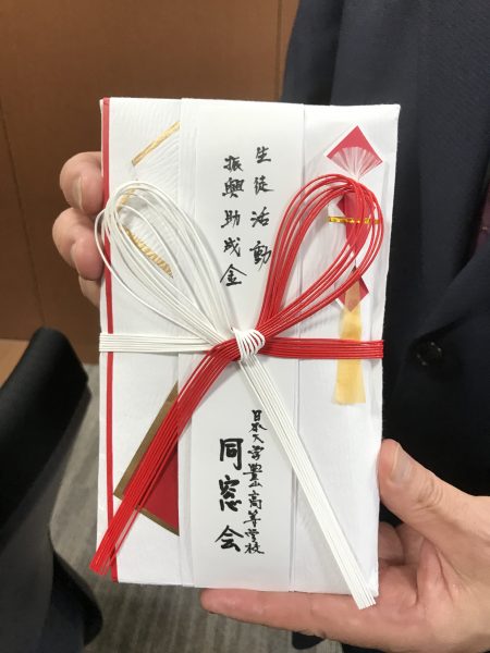 本校同窓会より、生徒活動振興助成金を賜わりました。