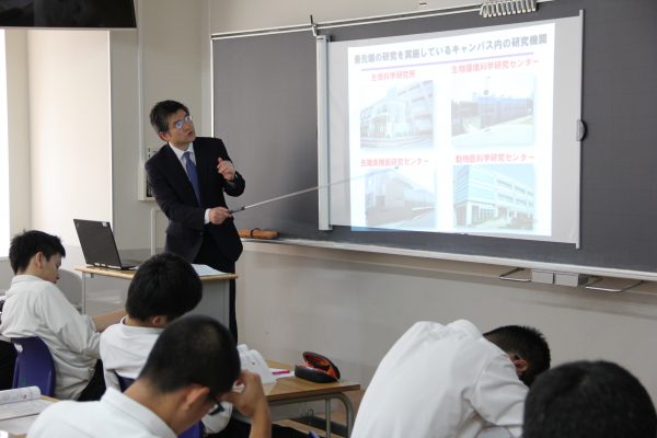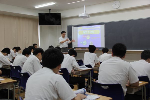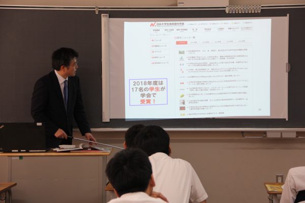 本校では中高大連携教育の一環として日本大学の学部説明会を行います。本日は,日本大学各学部の先生方に来て頂き,学部選びのきっかけとなるお話しをして頂きました。「大学選び」は「学部選び」です。大学で研究する大切な内容を学科の名前だけで選んでしまい,大学を途中で辞めてしまう学生が日本中に多くいるのは事実です。この説明会が良いきっかけになることでしょう。