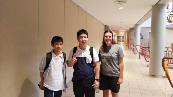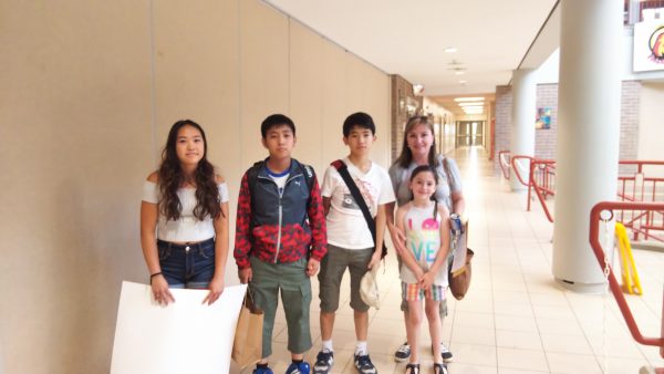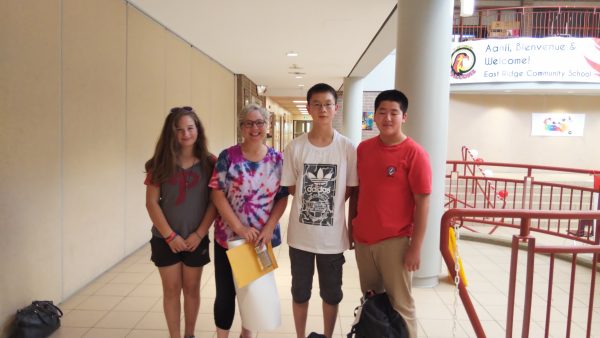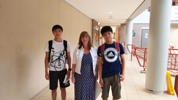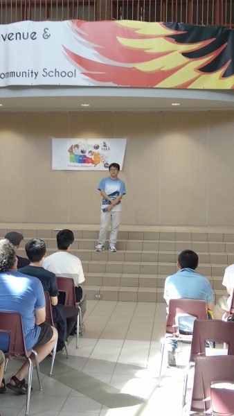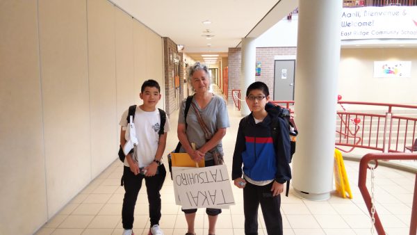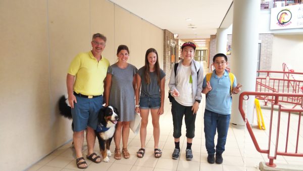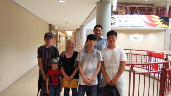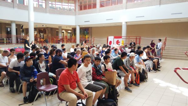 ホームステイの生徒たちはトロント市内観光を終え、昼食のハンバーガーを食べた後、大型バスに揺られること2時間30分。ホストファミリーの待つ学校へ到着しました。まずはウェルカムセレモニーが行われました。