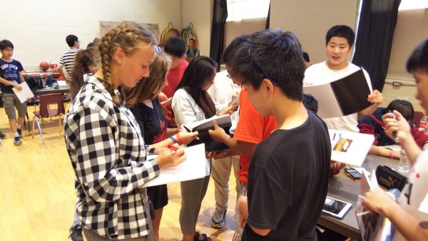 午後はmemory book作製です。オーウェンサウンド滞在中、先生方は授業と平行して写真を撮ってくれていました。一日一日の出来事を思い出す写真が本にまとめられていて、その本にコメントを書くという作業です。オーウェンサウンドでの2週間を振り返り、あんなことやこんなことがあったと語り合いながら作業を進めていきます。。。と思いきや、すぐに「サインください祭り」が始まりました。memory bookの中にサインのページがあることにいち早く気付いた人が、先生やバディにお願いをしに動き始めたのです。そうしたらもう、他の人たちも「いこう、いこう」と、お世話になったカナダの方々へサインをもらいに行きます。いいです、宝物の完成ですね。