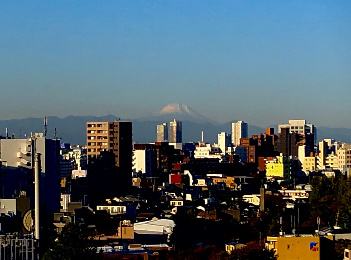 今日の朝、学校の10階からの景色です。