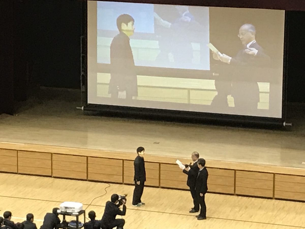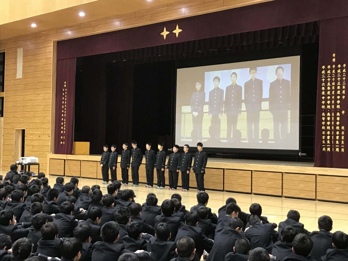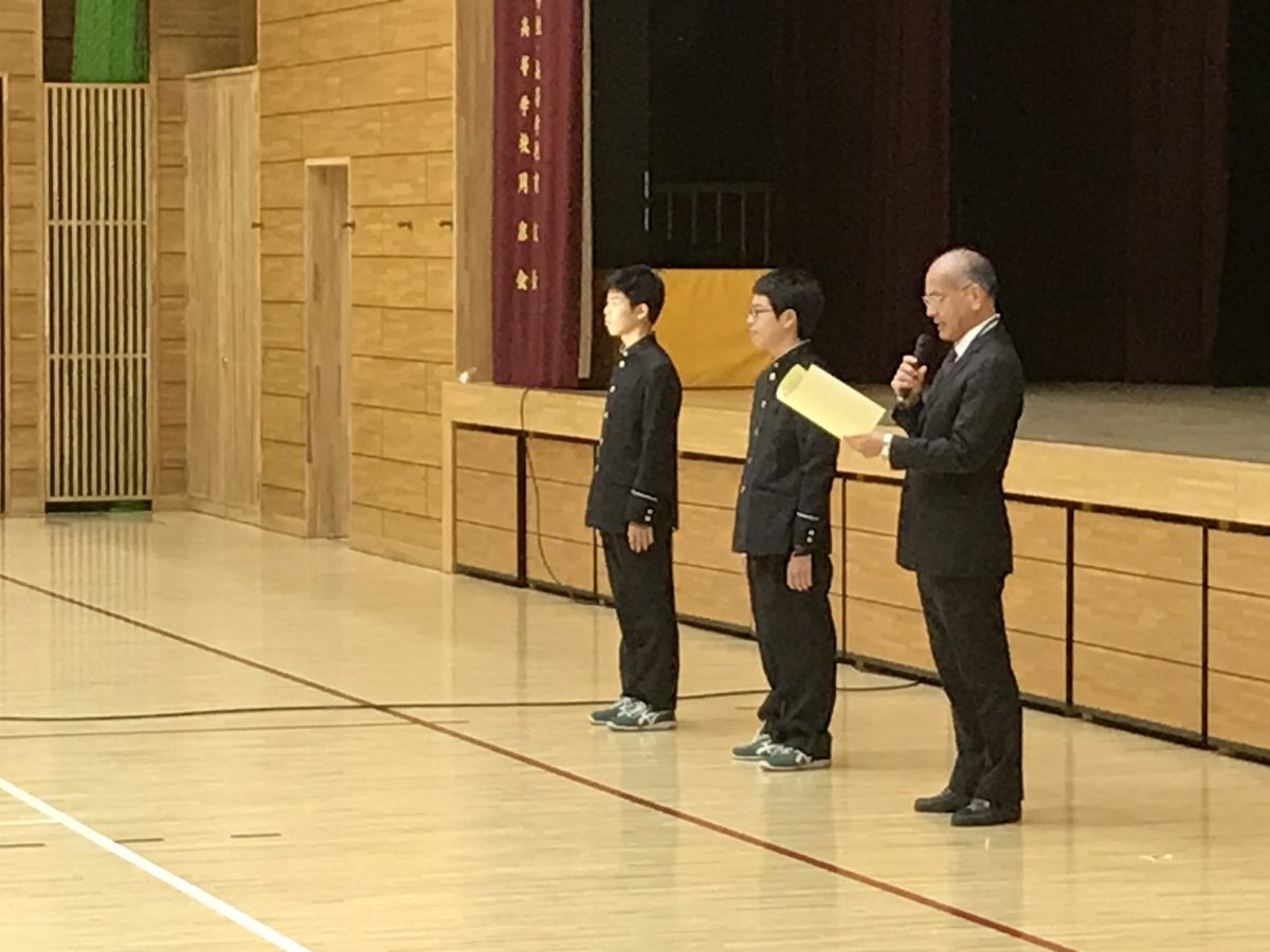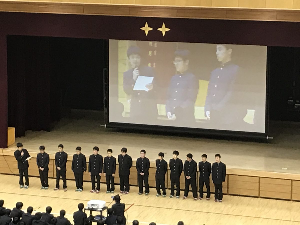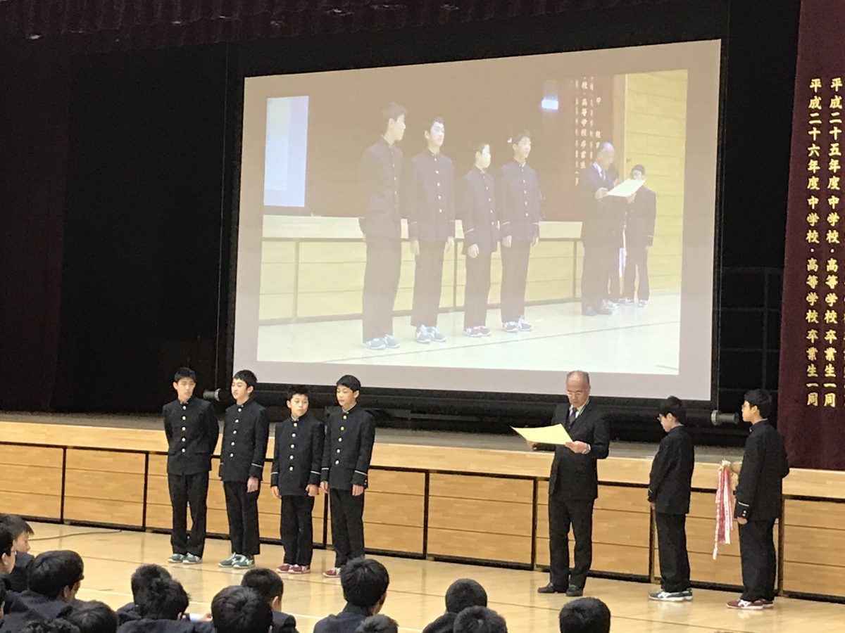 はじめに2学期活躍した部活動やコンクールの表彰がありました。また、新しい生徒会役員の紹介もありました。