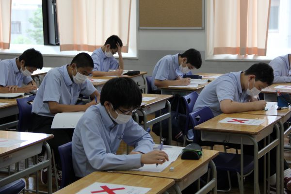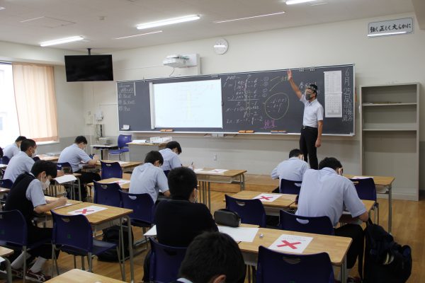 生徒たちは,必ずマスクを着用し,座席も周囲との間隔を確保するなど,感染予防に配慮しながら授業が進められています。