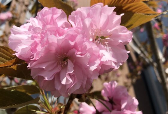 学校はオリエンテーション期間中。 学校の前では八重桜が開花し始めました。