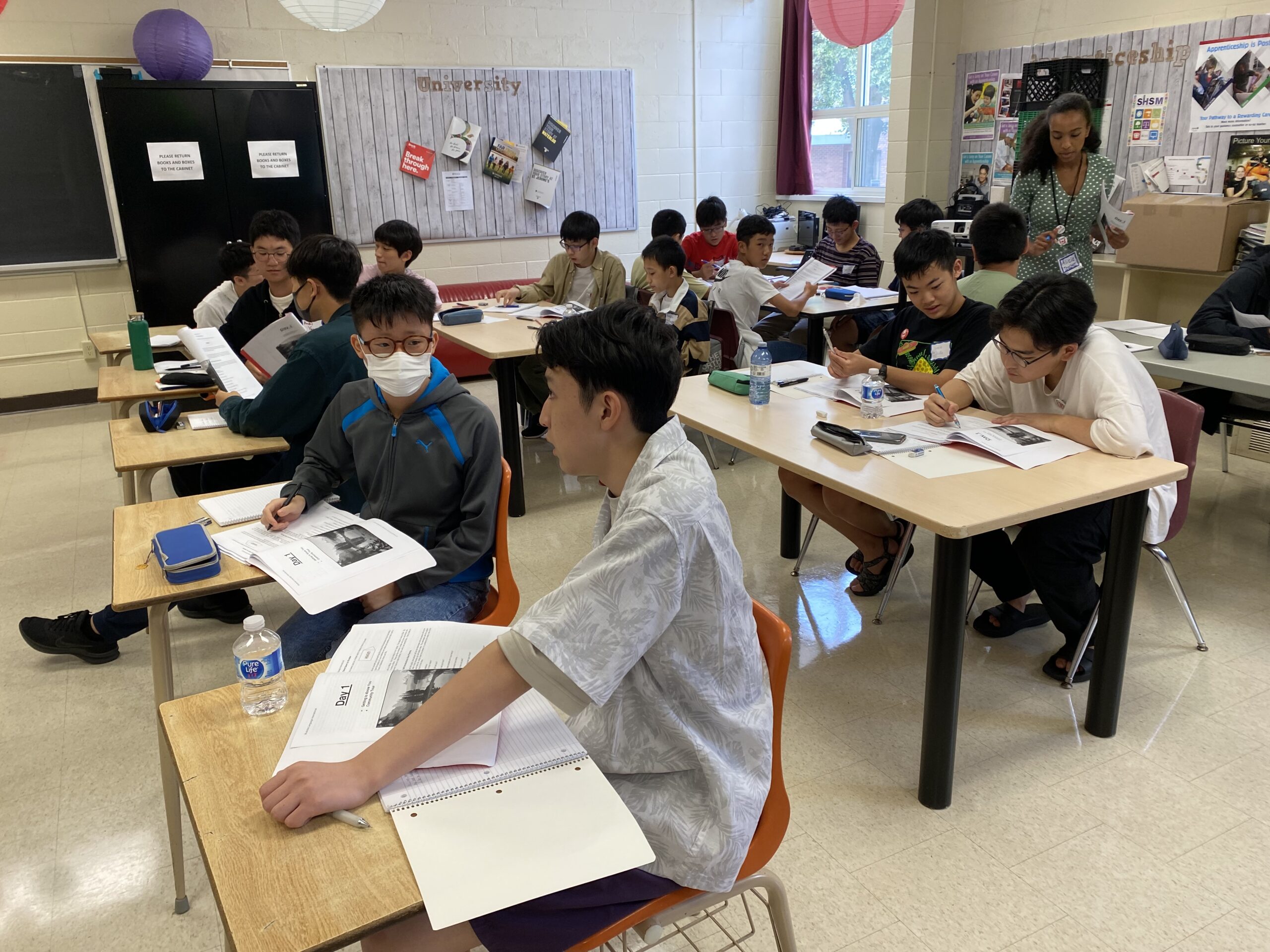 今日は最初の授業なので、午前は4技能を測るクラス分けテストが実施されました。