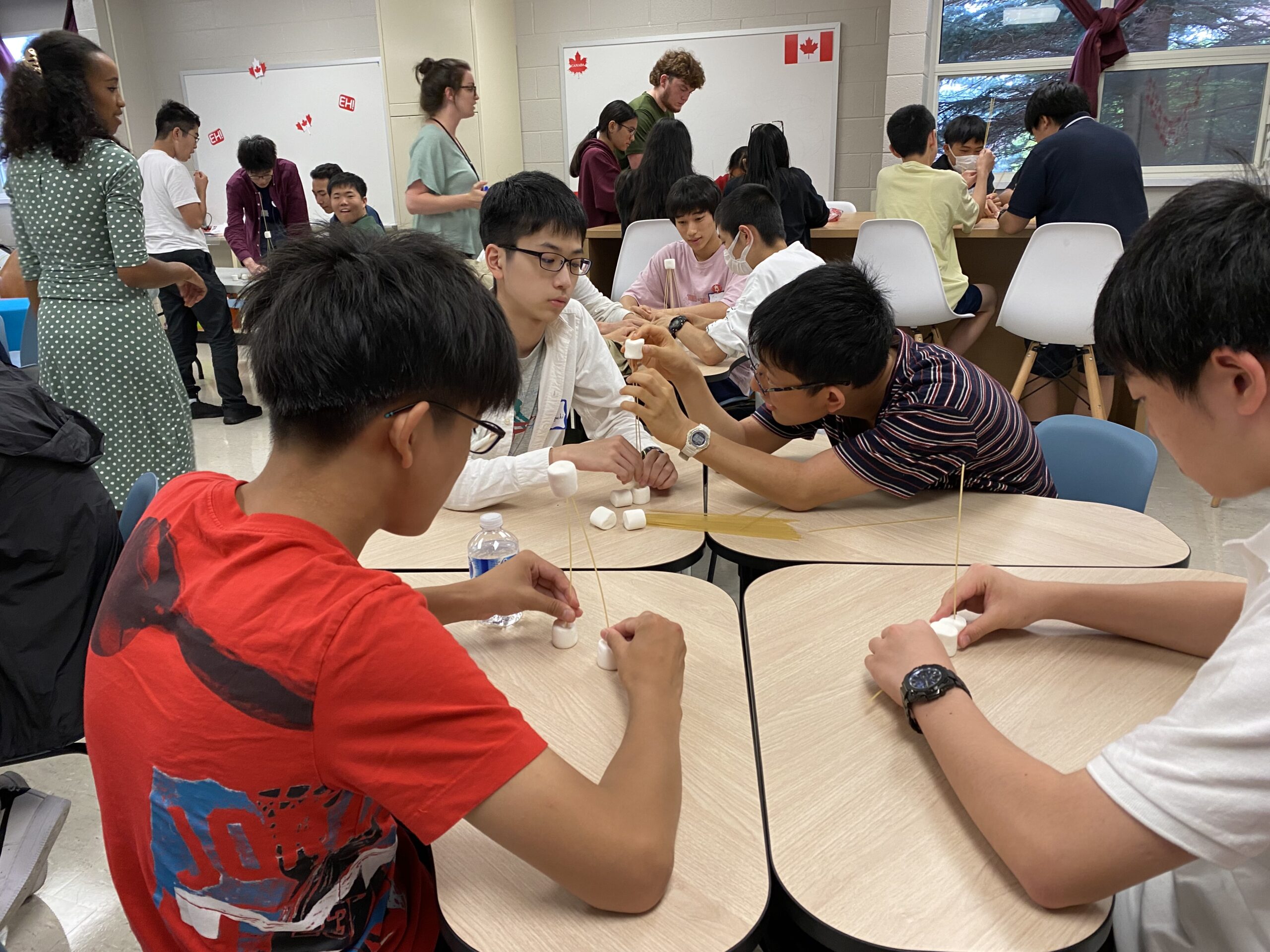 チームビルディングは屋外で実施する予定でしたが、昨日に続き荒天の影響で教室で行われました。