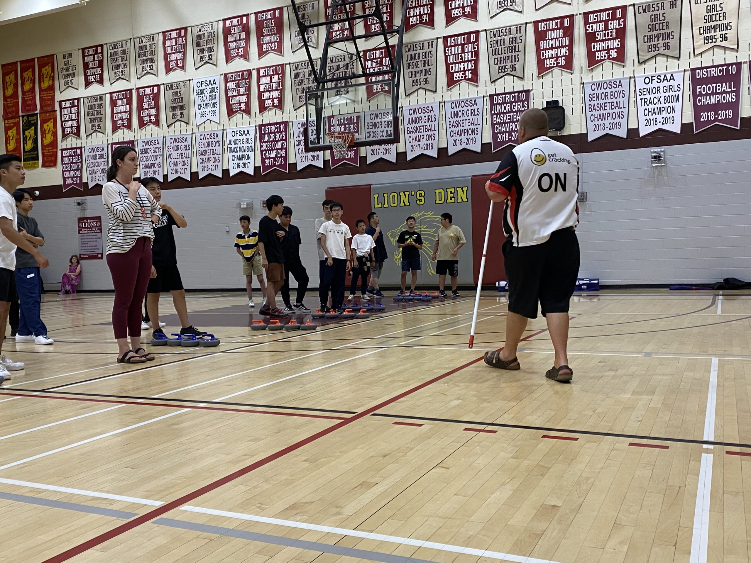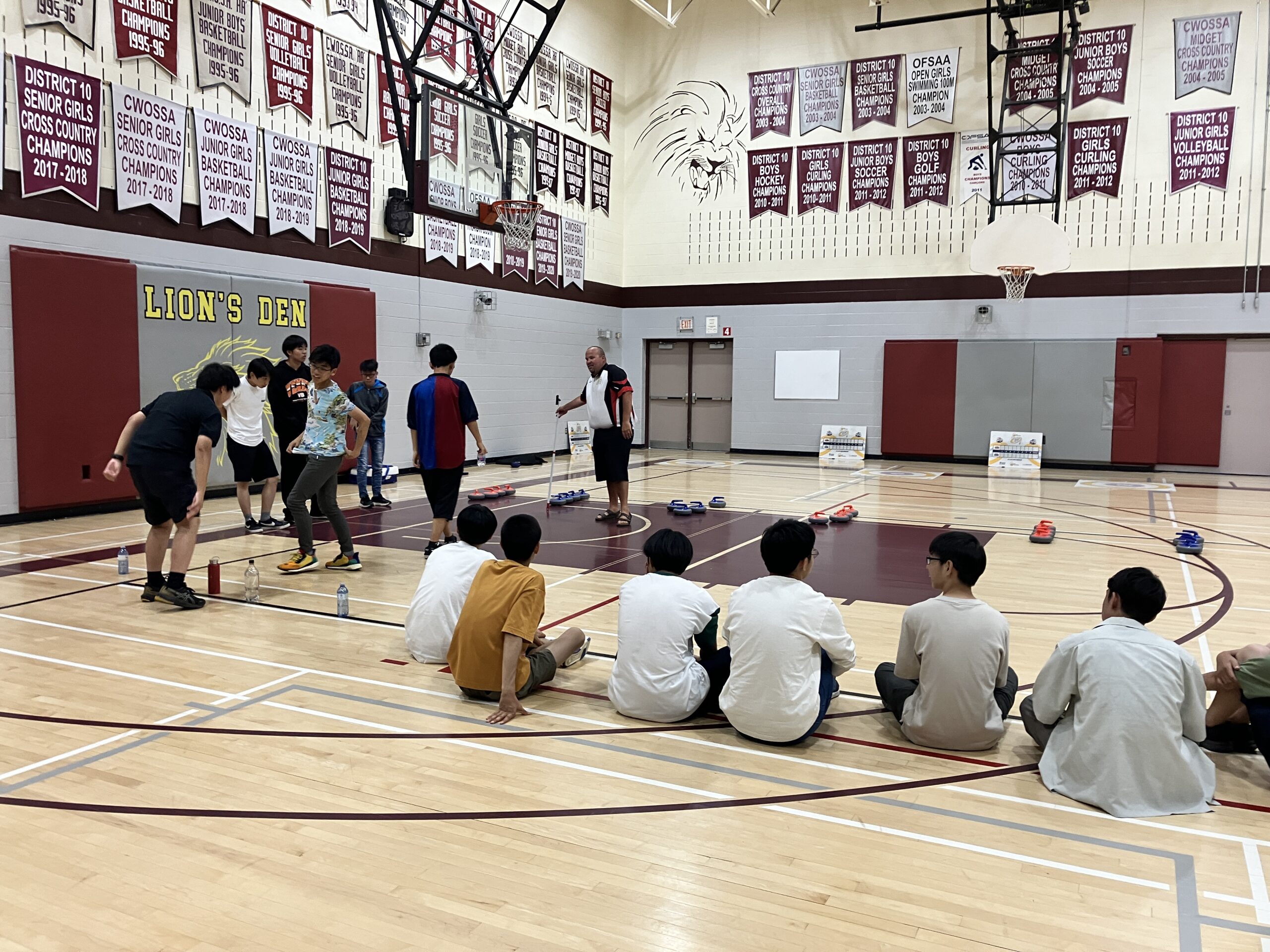 もちろん「氷上」ではなく学校の体育館を利用しての体験でしたが、どの生徒も真剣に楽しむことができました。