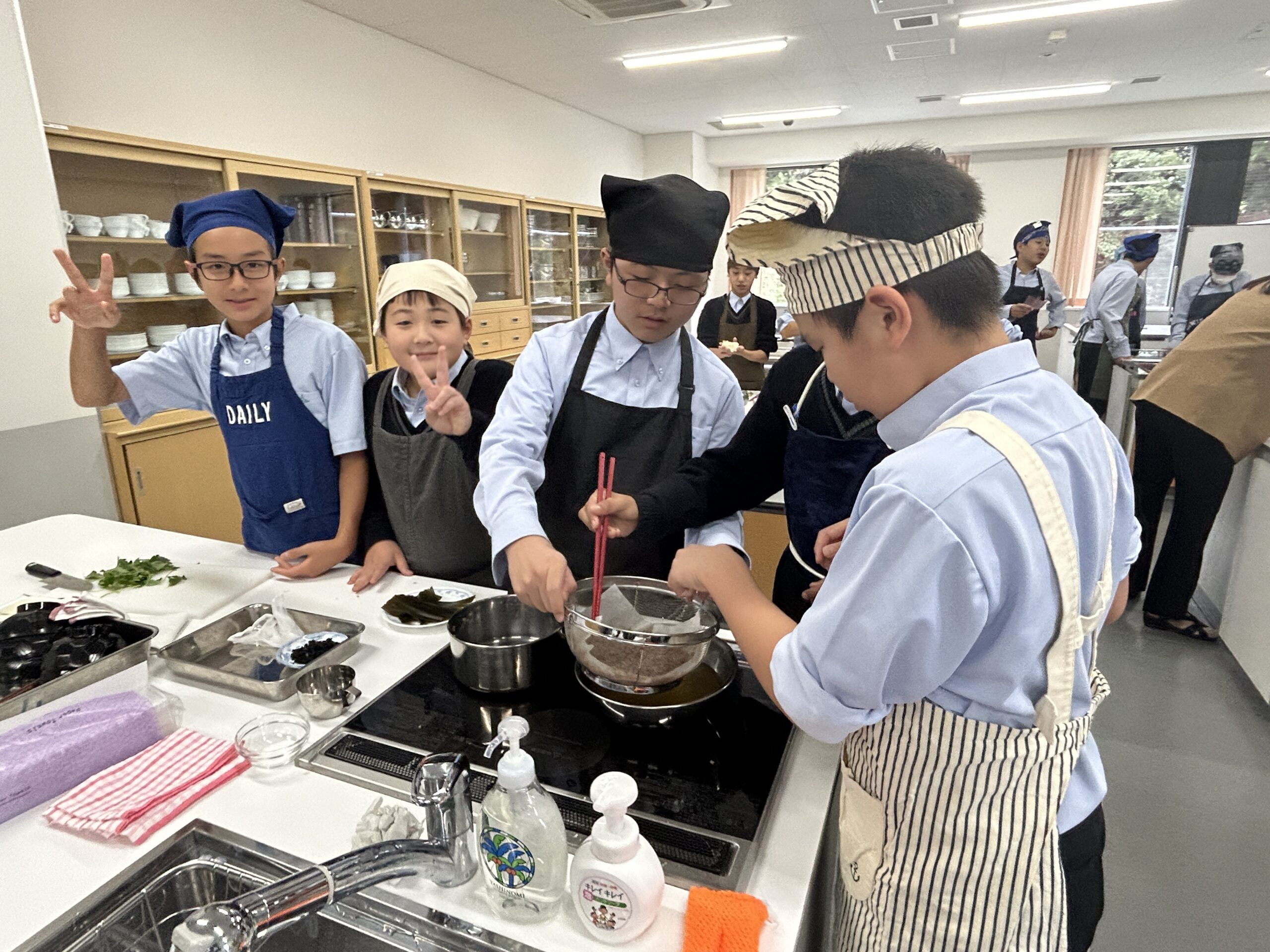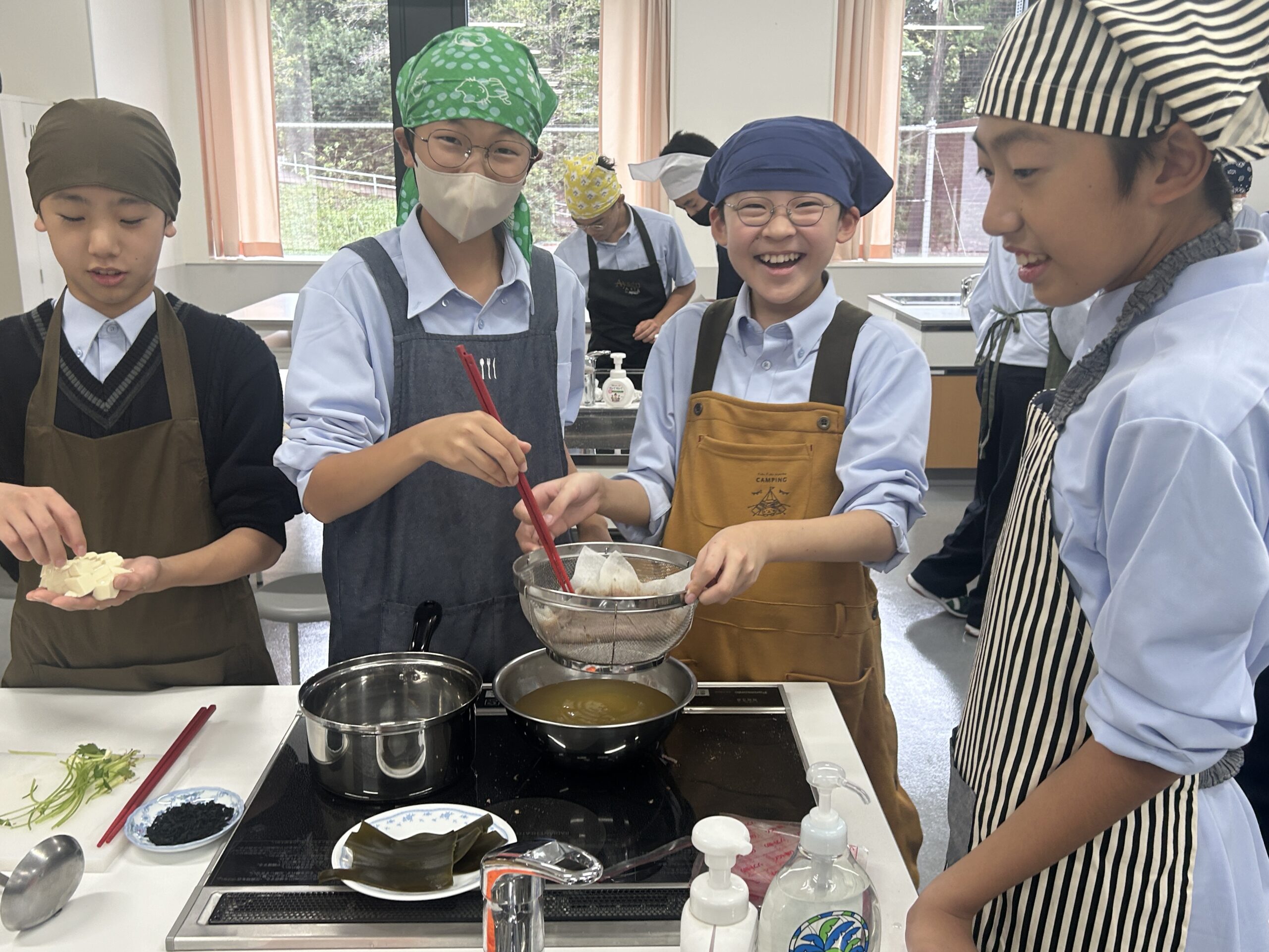 中学校1年生の調理実習。 タイトルのとおり「だしをしっかりととったすまし汁」をいただきました。