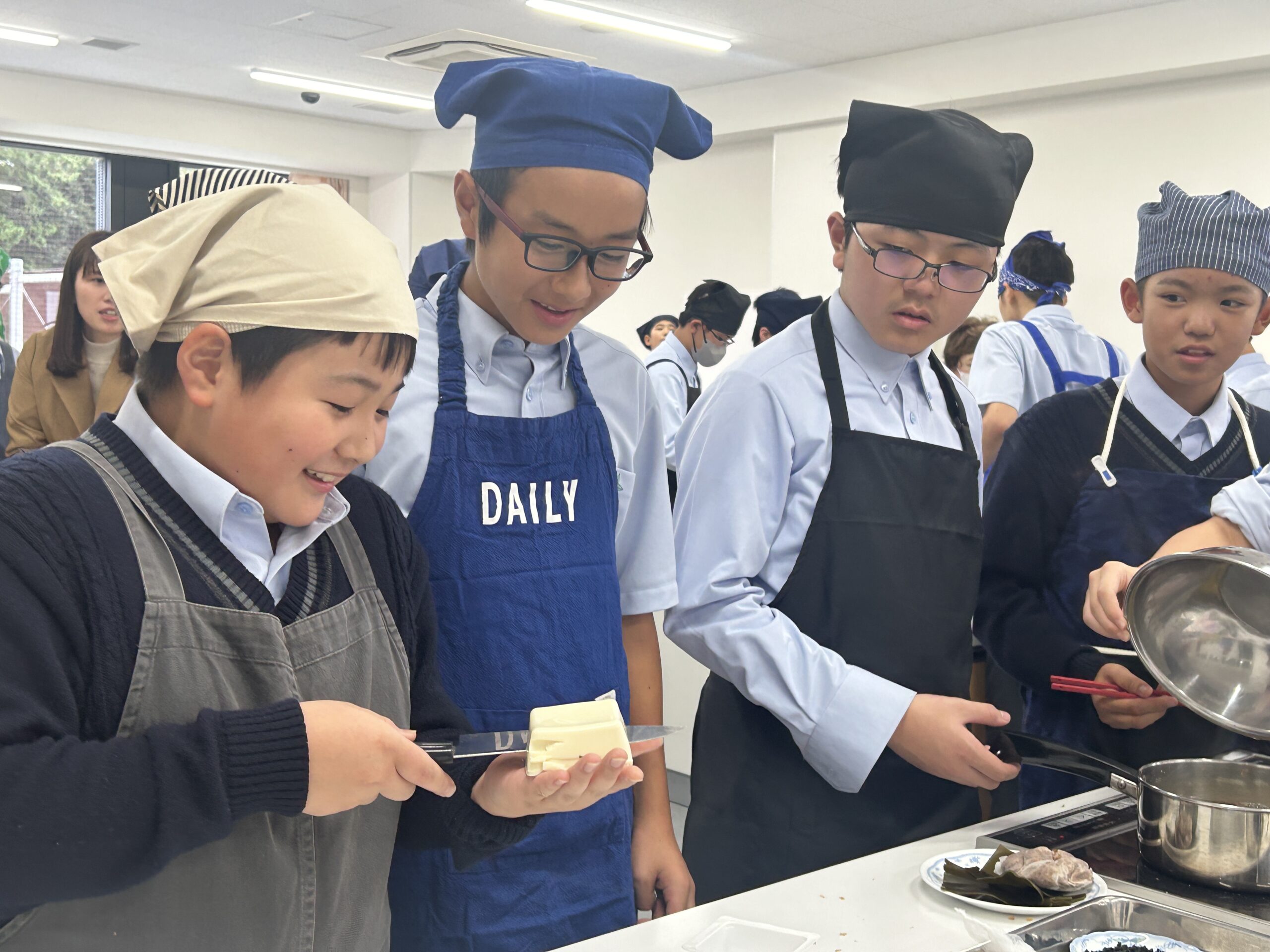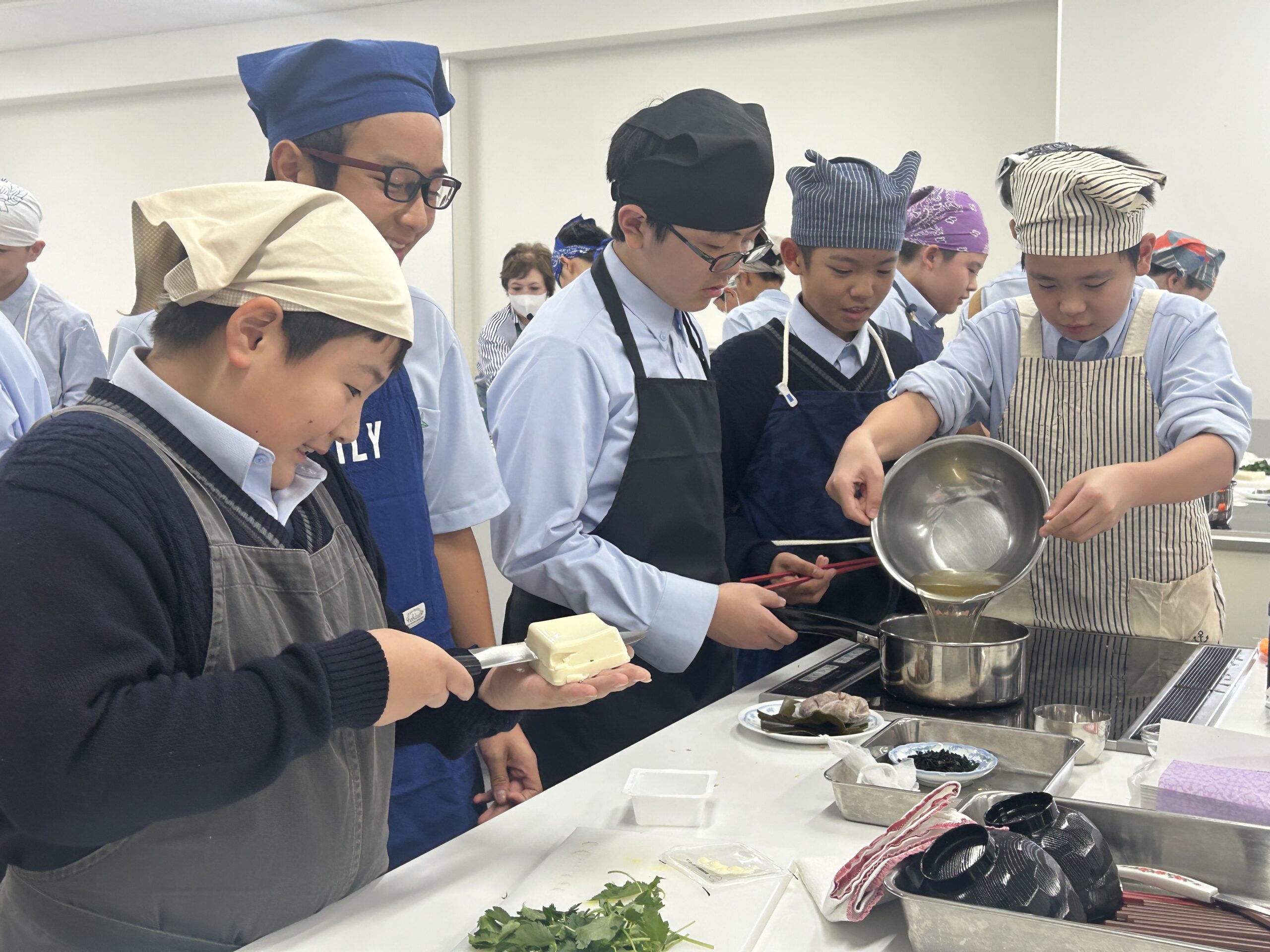 昆布だしとかつおだしの「すまし汁」 とうふを切る様子はハラハラ・・・
