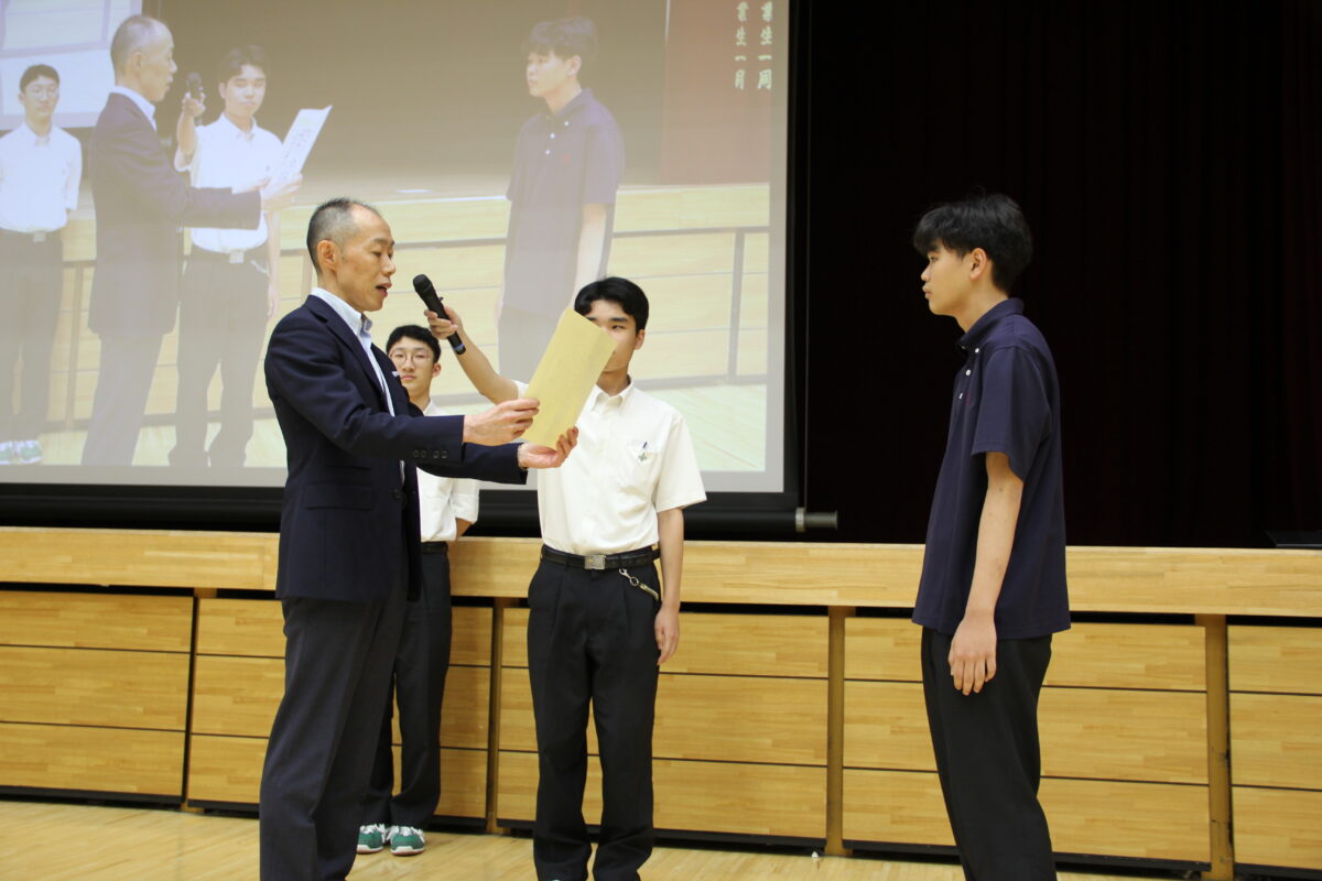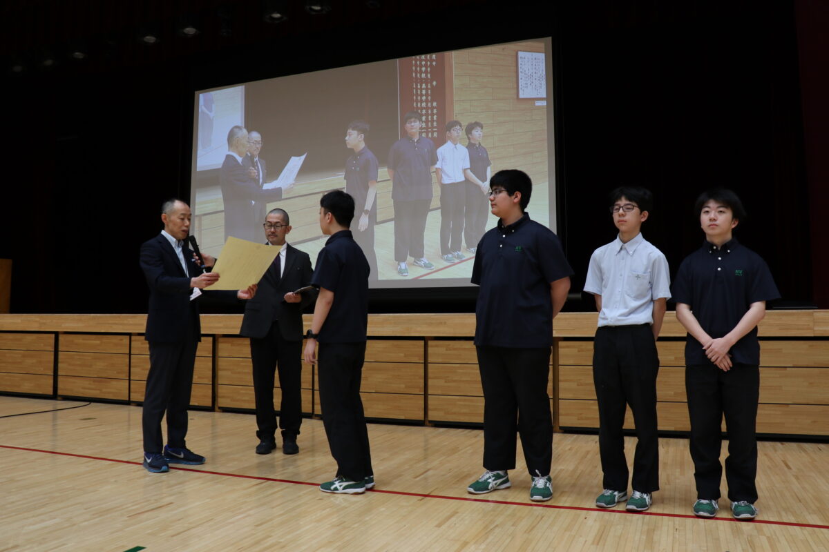開式前には放送部(中高ともに活躍!)の表彰と夏休みの大会に向けた壮行会(高校水泳部・陸上競技部・自転車部)が行われました。