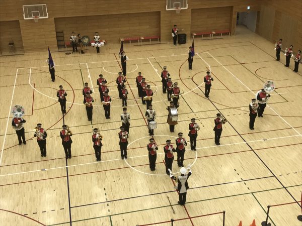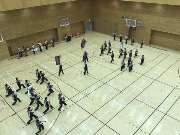 4/24火昼休みに本校アリーナで吹奏楽部の新入生歓迎ドリル演奏が行われました。
