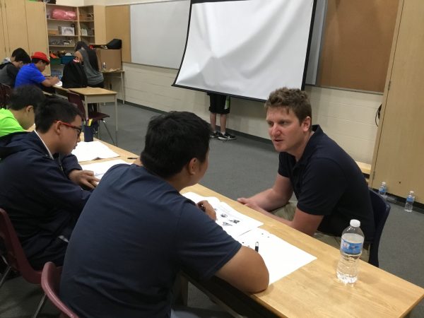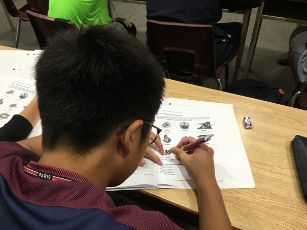 テキストの文章から先生の説明まで、日本語は一切使用しません。