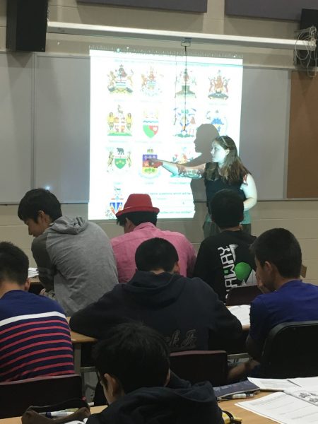 午前中のESLクラスでは、元イギリス連邦の国らしく、紋章について学び、最後に自分の紋章を描いていました。