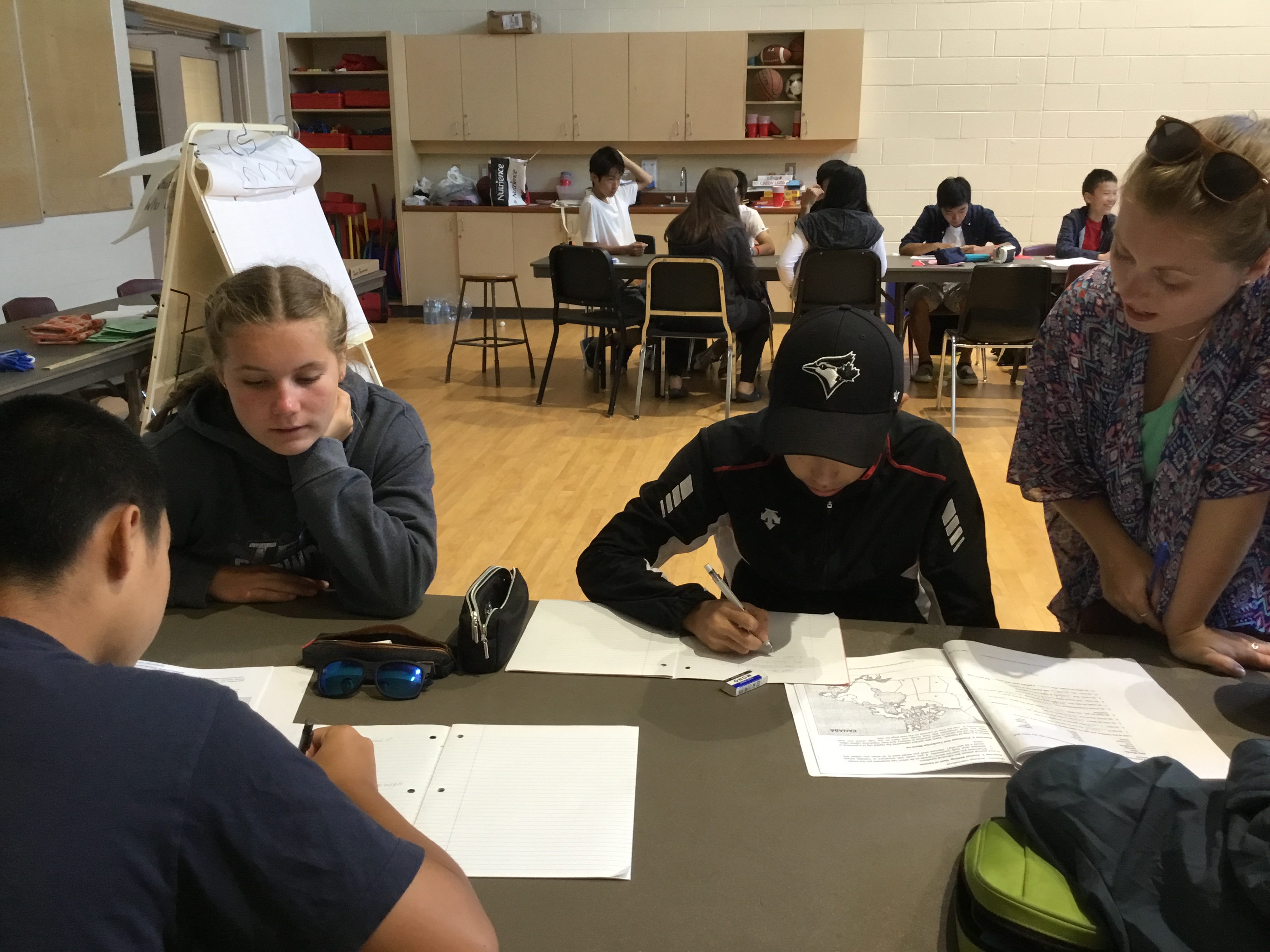 本日も全員無事に登校してきました。 午前中はテキストを用いた講座です。先生方だけでなく、バディたちも気さくに声をかけ、問題を解く手助けをしてくれます。