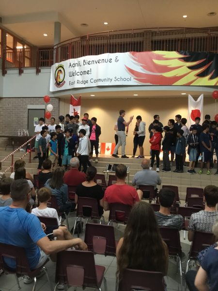 内容は副団長のスピーチや、カナダ国歌や校歌の斉唱、ピクチャースライドの上映、サーティフィケイトとUSBの授与など盛りだくさんの内容でした。