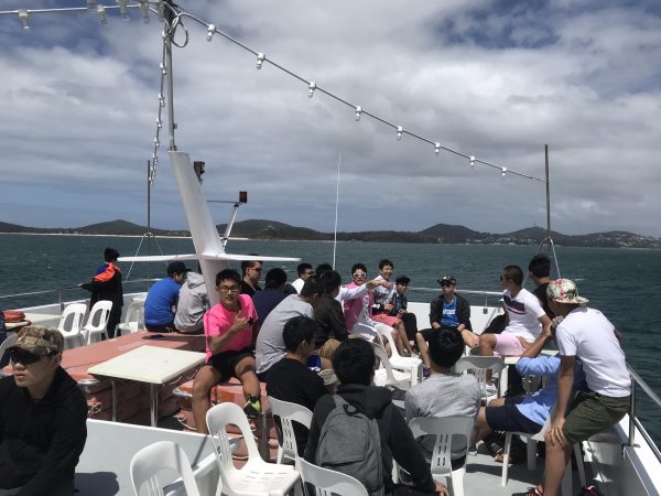 We woke up early in the morning for watching dolphins. Yeah! We were able to watch some dolphins.