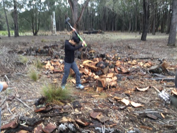 ホストファーザーいわく、オーストラリアの木はとても硬いとのことでした。彼らも苦労して割っていました。