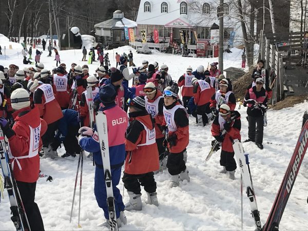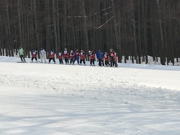 天候に恵まれて無事到着。14:30よりレッスンがスタートしました。初心者も早速スキー板を履いて奮闘しています。