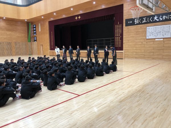 今日のオリエンテーションは学年集会。先生方からは、中学生活を送るためのルールやマナーを守り、有意義な学校生活を送れるよう話しがありました。