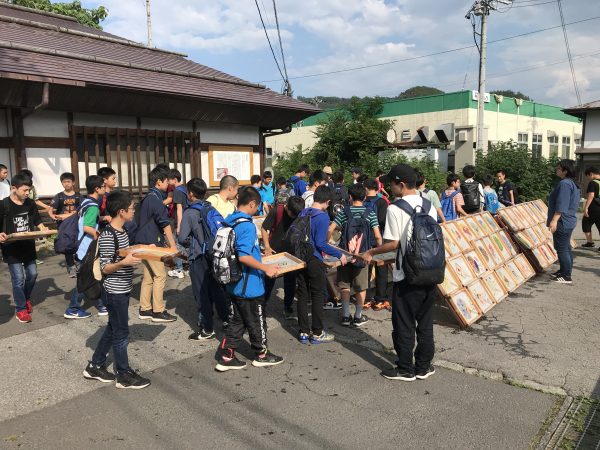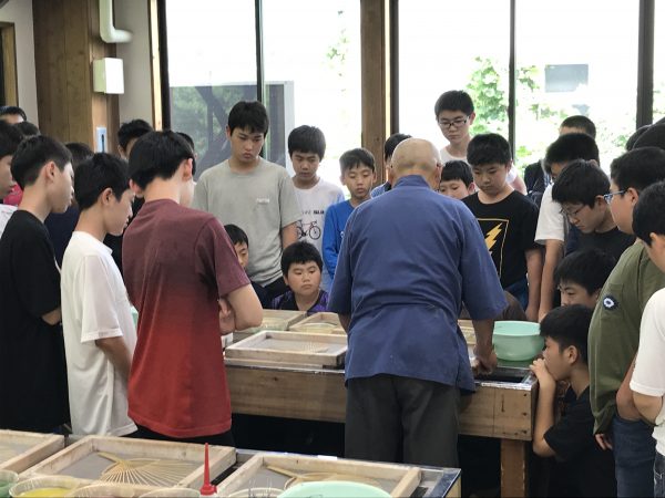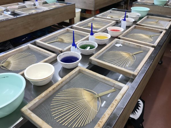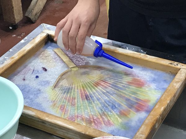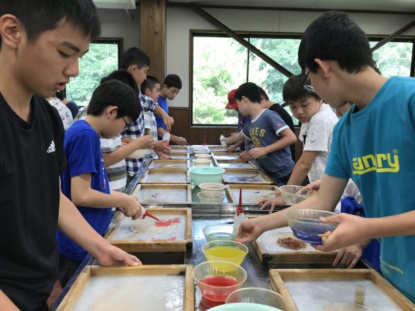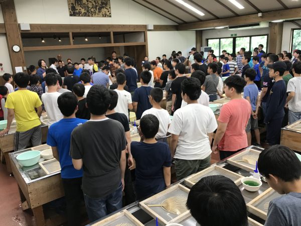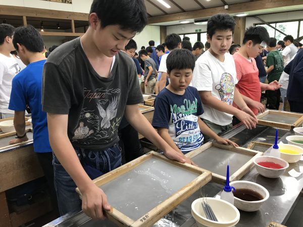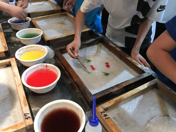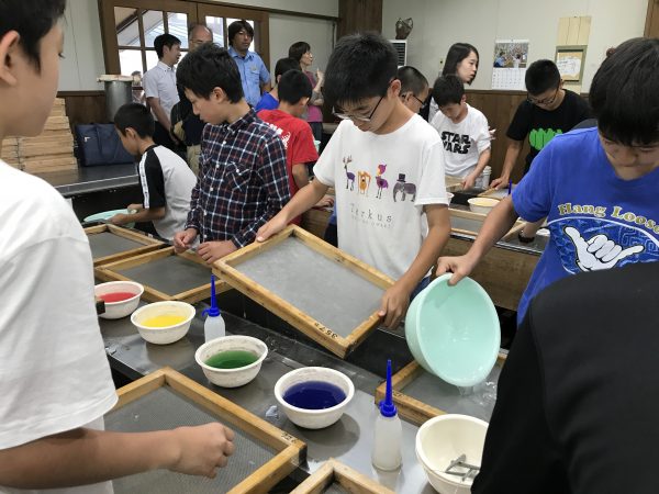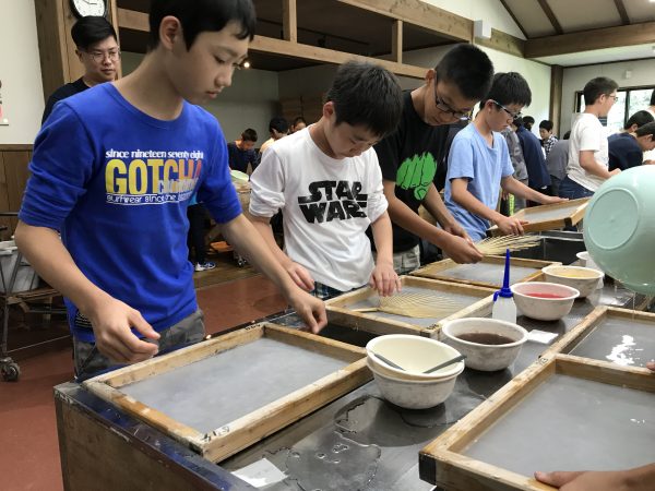 今日の午後は和紙漉き体験に。300年の伝統をもつ立岩和紙にチャレンジしました。長野県長和町に移動。和紙漉きで団扇を作成しました。
