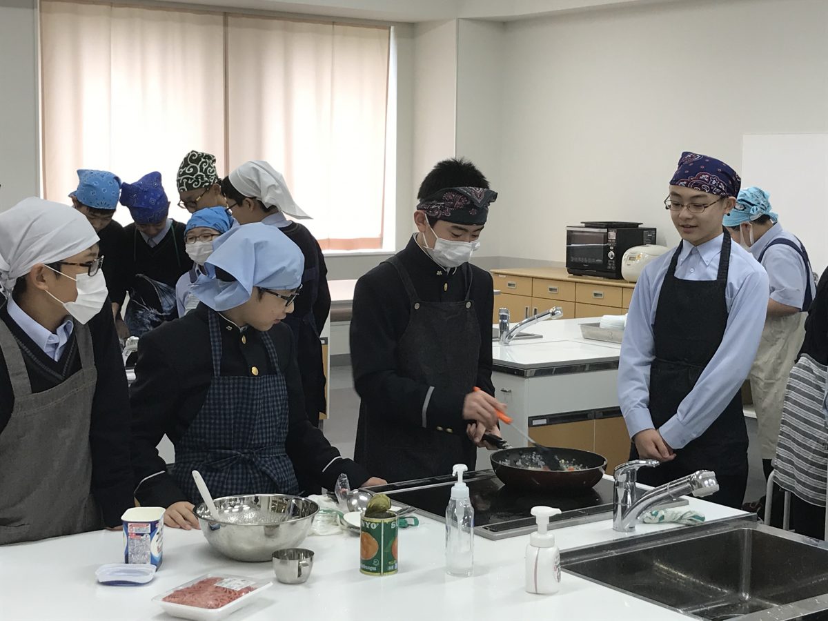 日頃、料理に慣れた生徒とそのようでない生徒。いろいろですが、懸命に調理に取り組んでいました。