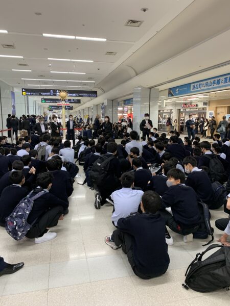 中学3年生は2班に分かれて鹿児島・熊本に修学旅行へ向かいます。