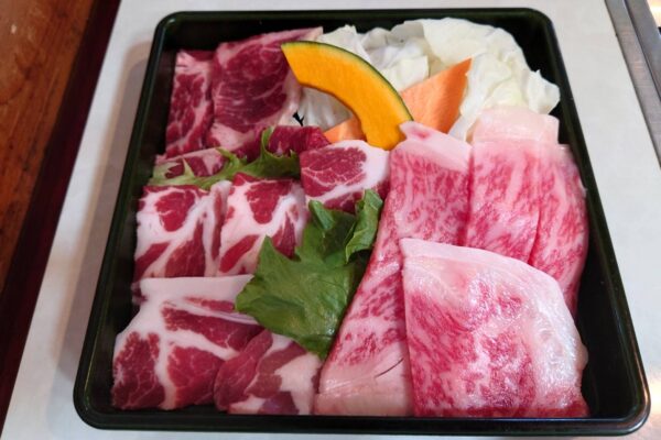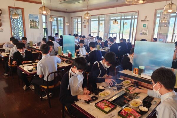 初日の昼食は、高千穂牧場にて霧島黒豚の焼き肉をいただきました。