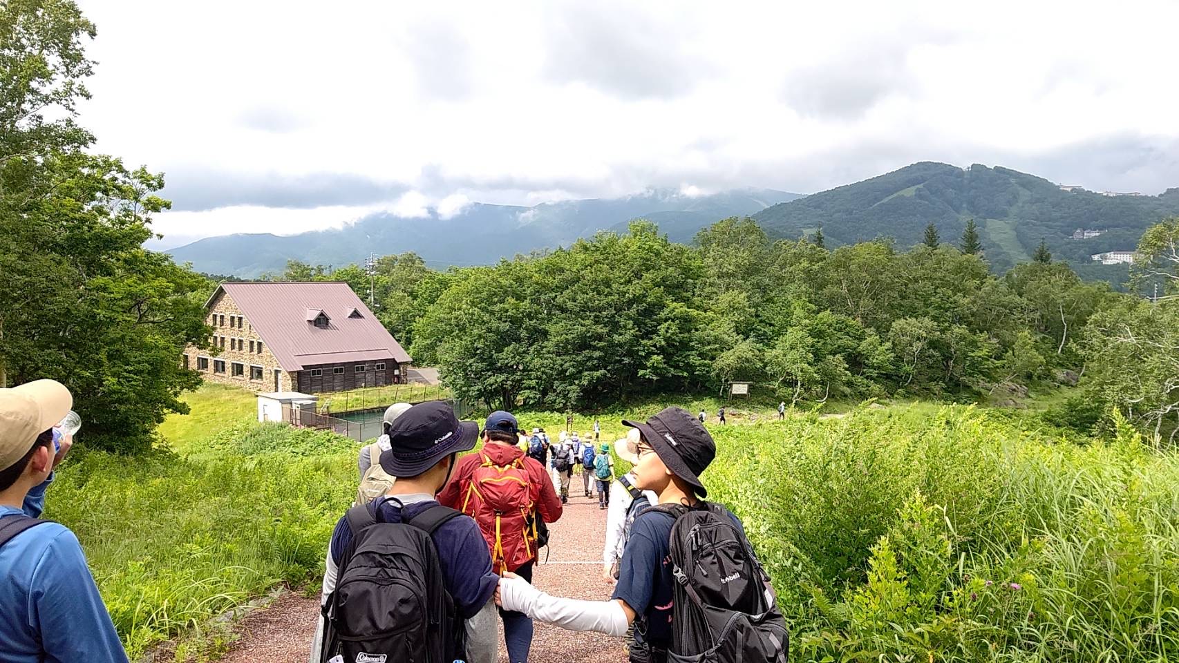本日は、木戸池でバスを降り、サンバレーまで歩く予定でしたが、天候不良により蓮池までとなりました。生徒たちにとっては初の部活動の合宿であり、とても元気に歩いていました。