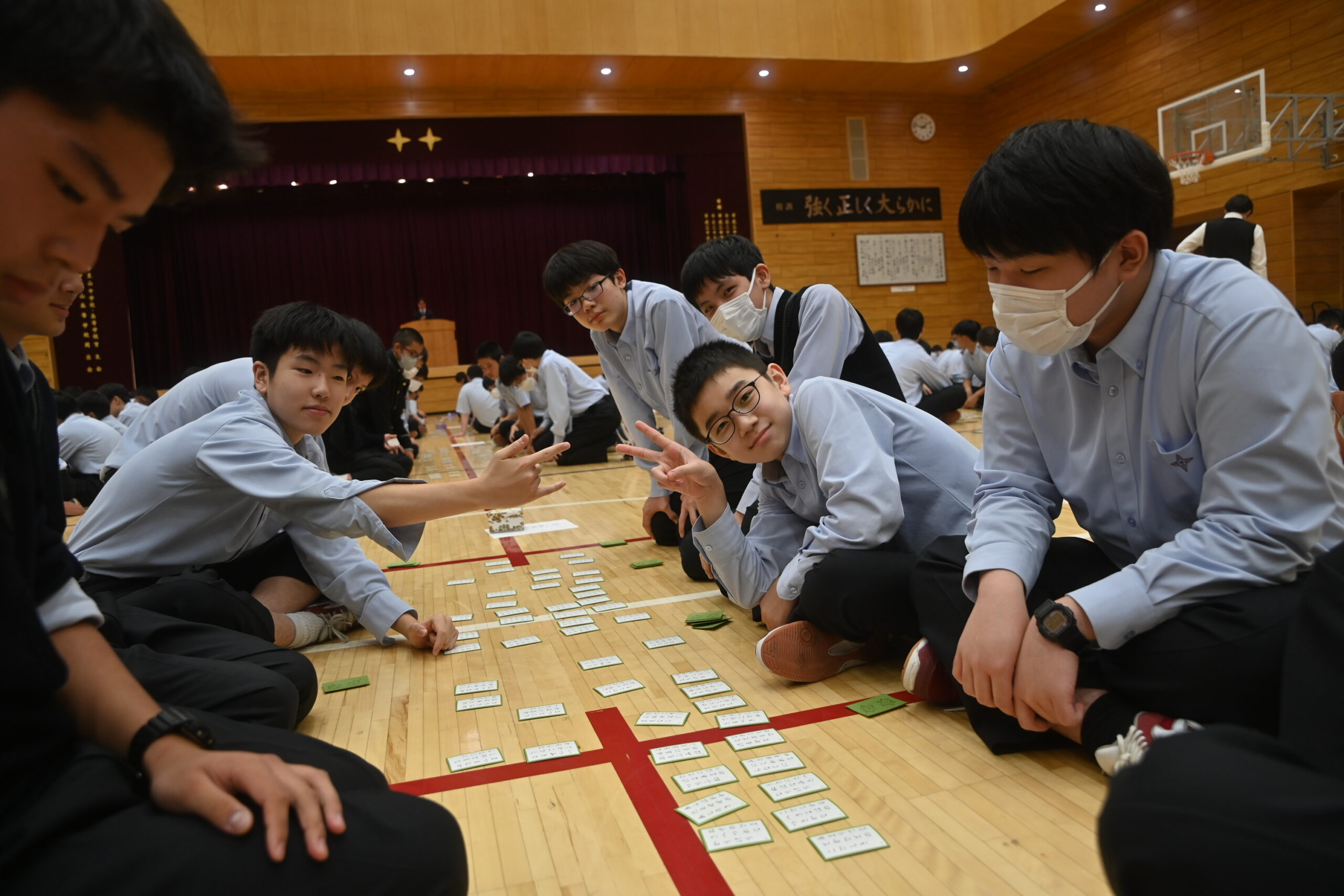 本日の午後、本校アリーナで中学1・2年対象に百人一首かるた大会が実施されました。