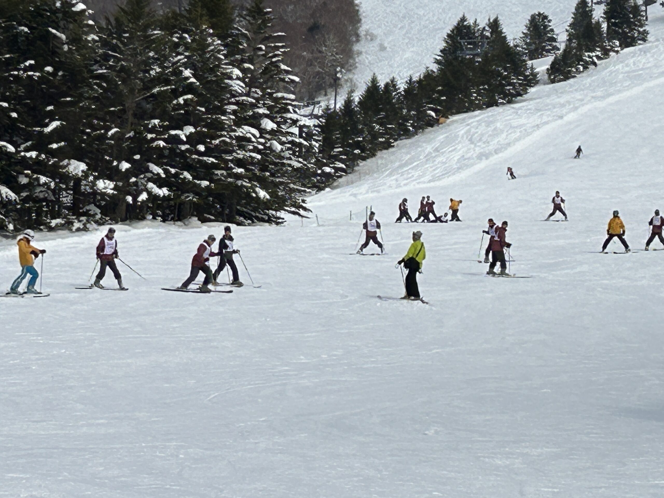 天気に恵まれた一日でした。 グループによっては、東館山の林間コースや一ノ瀬のゲレンデまで足を延ばし、相当な距離を滑走していたようです。 天気予報ではあしたも晴れ。 これから温泉に浸かってゆっくり休んでください。
