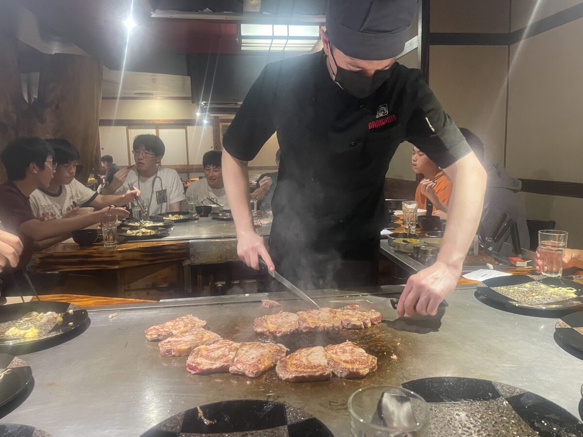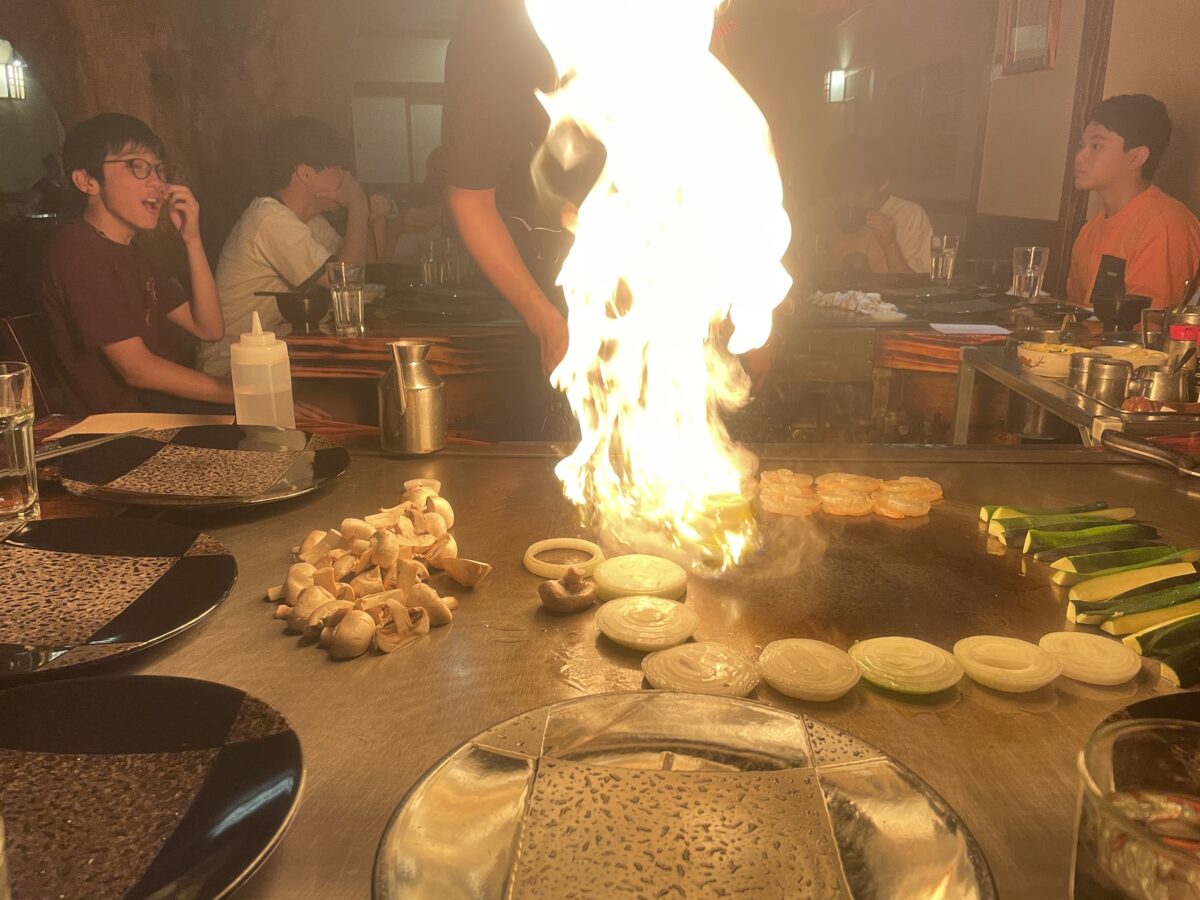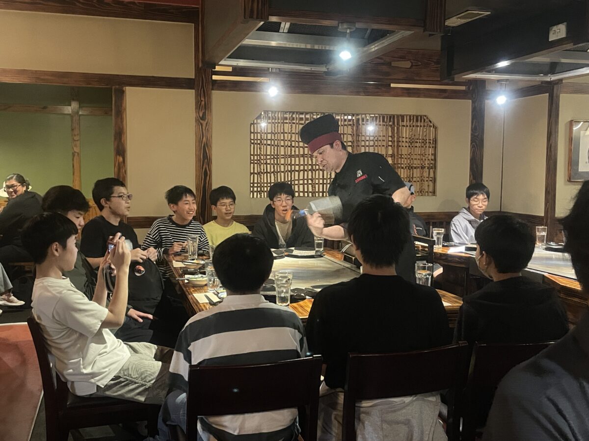 その後、買い物を兼ねてグループに分かれて自由行動の後、夕食。今夜は鉄板焼きをいただきました!!久しぶりの日本食と鉄板パフォーマンスに生徒達のテンションMAX!!