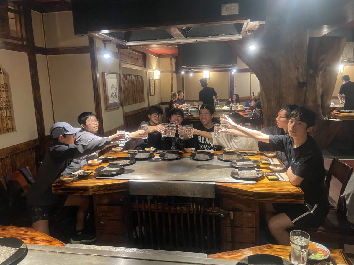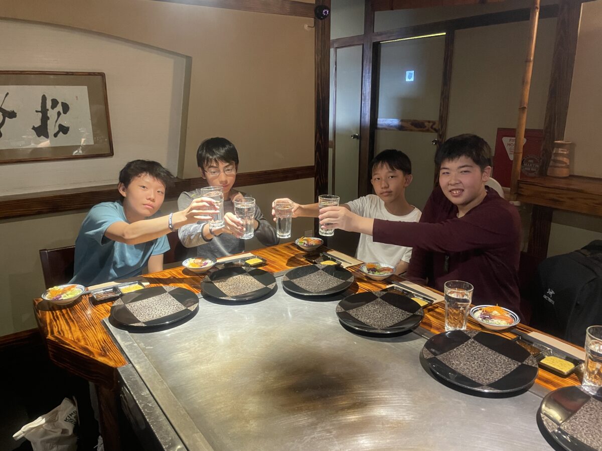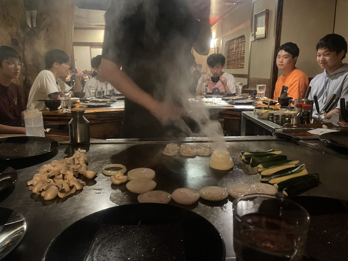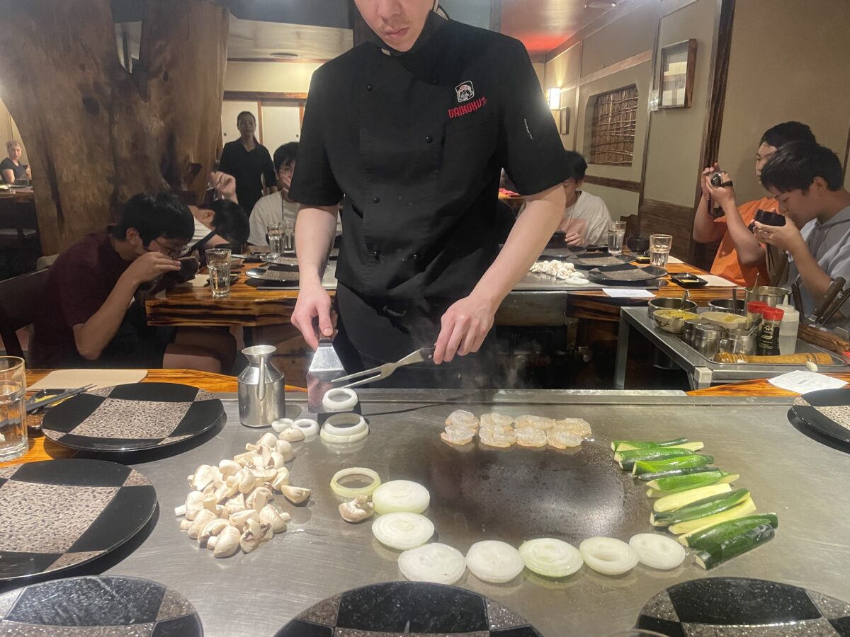 その後、買い物を兼ねてグループに分かれて自由行動の後、夕食。今夜は鉄板焼きをいただきました!!久しぶりの日本食と鉄板パフォーマンスに生徒達のテンションMAX!!