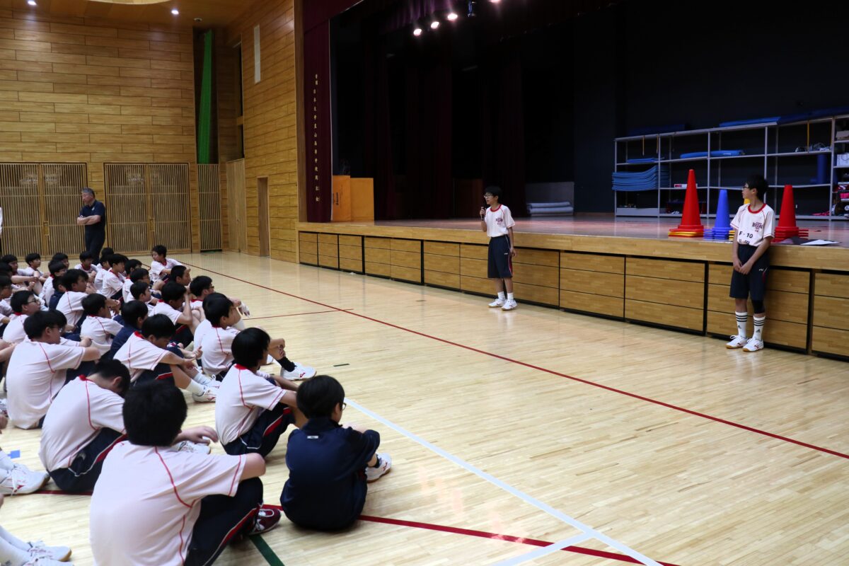 学年ごとにアリーナへ移動し,明日の流れを確認しました。