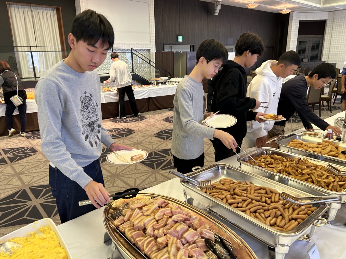 修学旅行2日目のスタートはホテルでの朝食バイキングから。