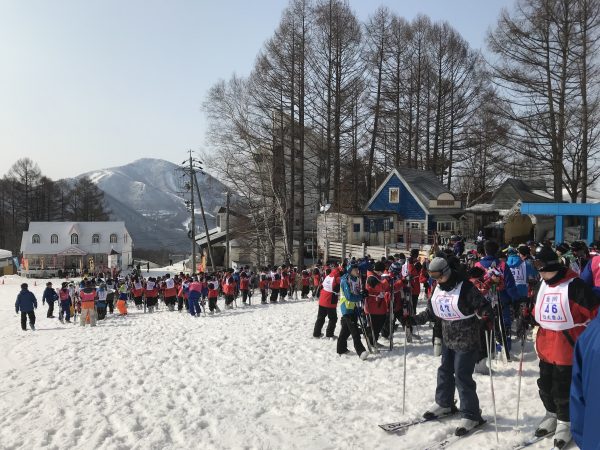 お天気に恵まれたゲレンデ。これから初日の滑走がスタート。インストラクターや先生方の指導のもと、上達してくださいね。