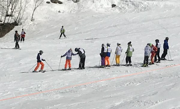 今日から本格的なレッスンが始まります。初心者班もまもなくリフトを使って長い距離を滑走。