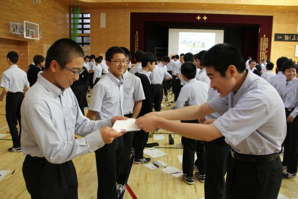 名刺交換の練習も行いました。本格的ですが、皆楽しんで取り組んでいます。