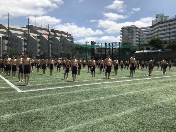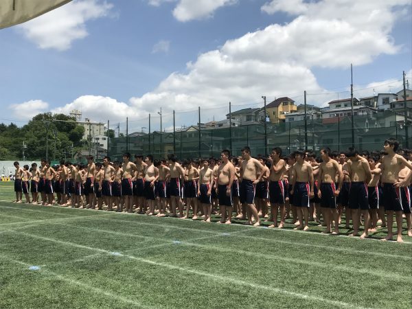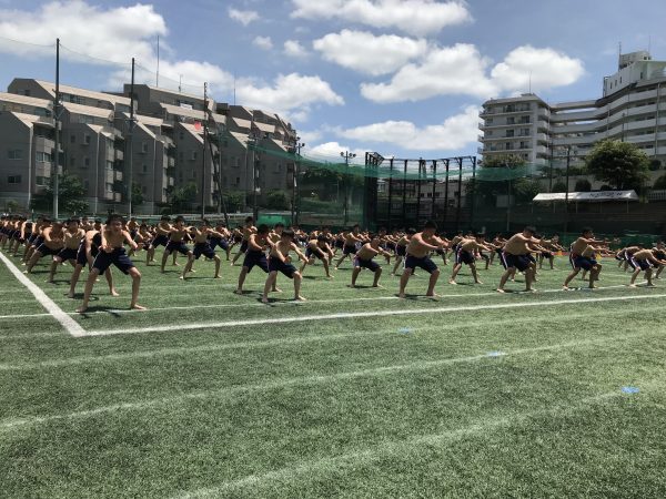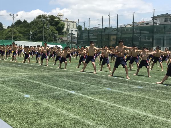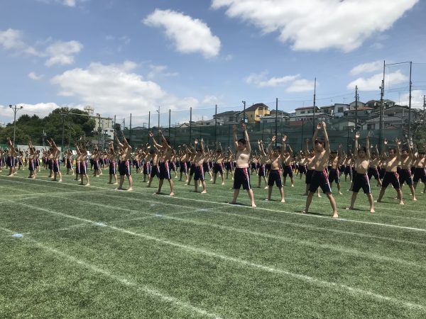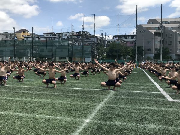 豊山中学校、体育大会恒例の行事、相撲体操。
