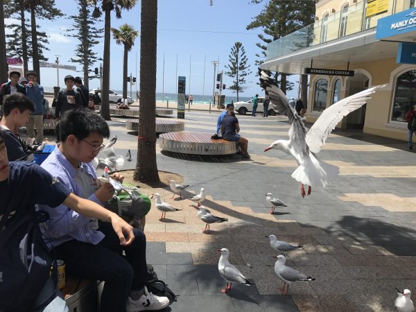 爽やかな風の中、それぞれがカモメと戯れながらご飯を食べていました。