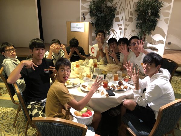 無事に4クラスがオアフ島に到着し、アラモアナホテルで夕食をいただいています。