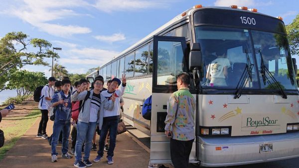 H・I組は、7時に朝食を食べて、集合写真を撮ってから空港に向かい、いま搭乗を待っているところです。