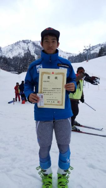 本校からも多くの選手が出場し、SL(回転)競技の選考会において、高校2年生の鳥海くんが見事優勝をしました。