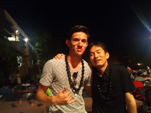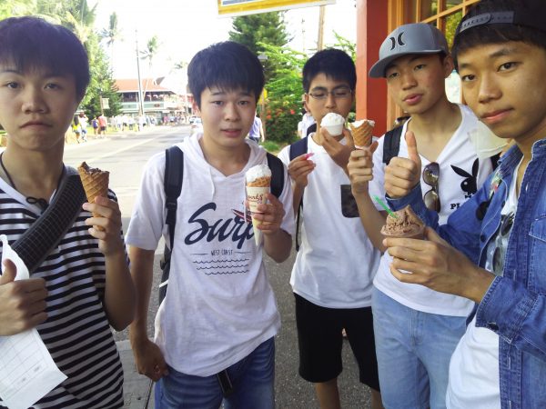 1班の2日目の午後はマウイ島にあるラハイナなという町での自主研修です。にぎやかな町というわけではないですが、日本人が少ない分だけ、必然的に英語を使う必要があります。アウトレットで洋服を購入したり、シェーブアイスを注文してみたりと、よく頑張っていたと思います。夜はハワイの文化体験としてルアウショーを見ました。フェイスペインティングもしてもらいました。