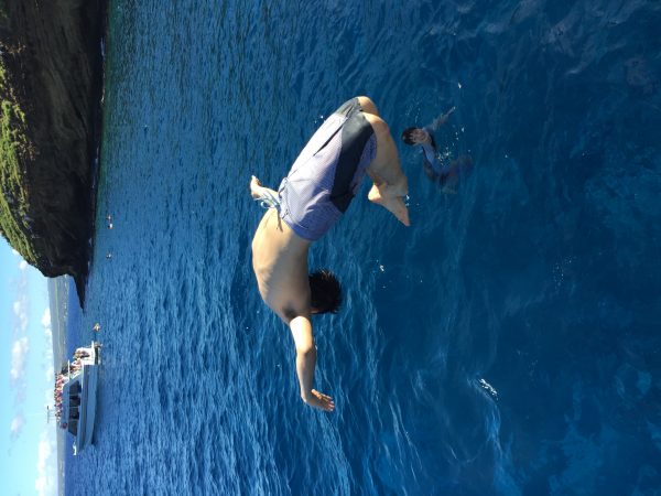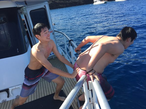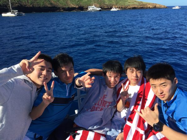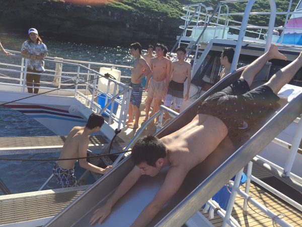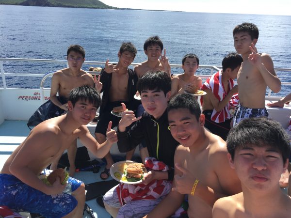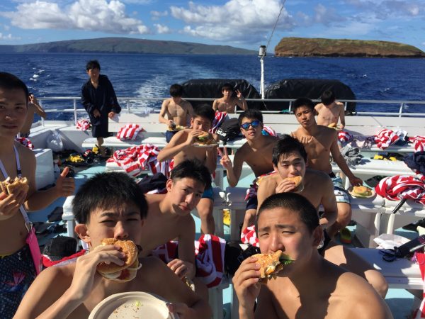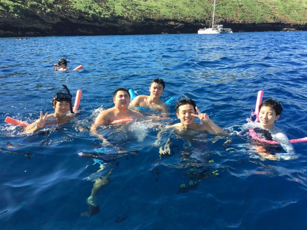 起床6時、ハワイで初めての朝を迎えました。水着を着用してスポットへ船で向かいます。天気は最高、波も穏やかで絶好のスノーケリング日和です。美味しいご飯と青い海を堪能できました。