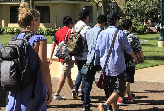 修学旅行4日目、今日はブリガムヤング大学のキャンパスツアー。生徒たちは8人ずつのグループに分かれて大学生と一緒にキャンパスツアーに出かけました。もちろん、日本語の話せるツアーリーダーはいません。たくさんコミュニケーションをとってください! 留学の仕方もアドバイスもらったら…