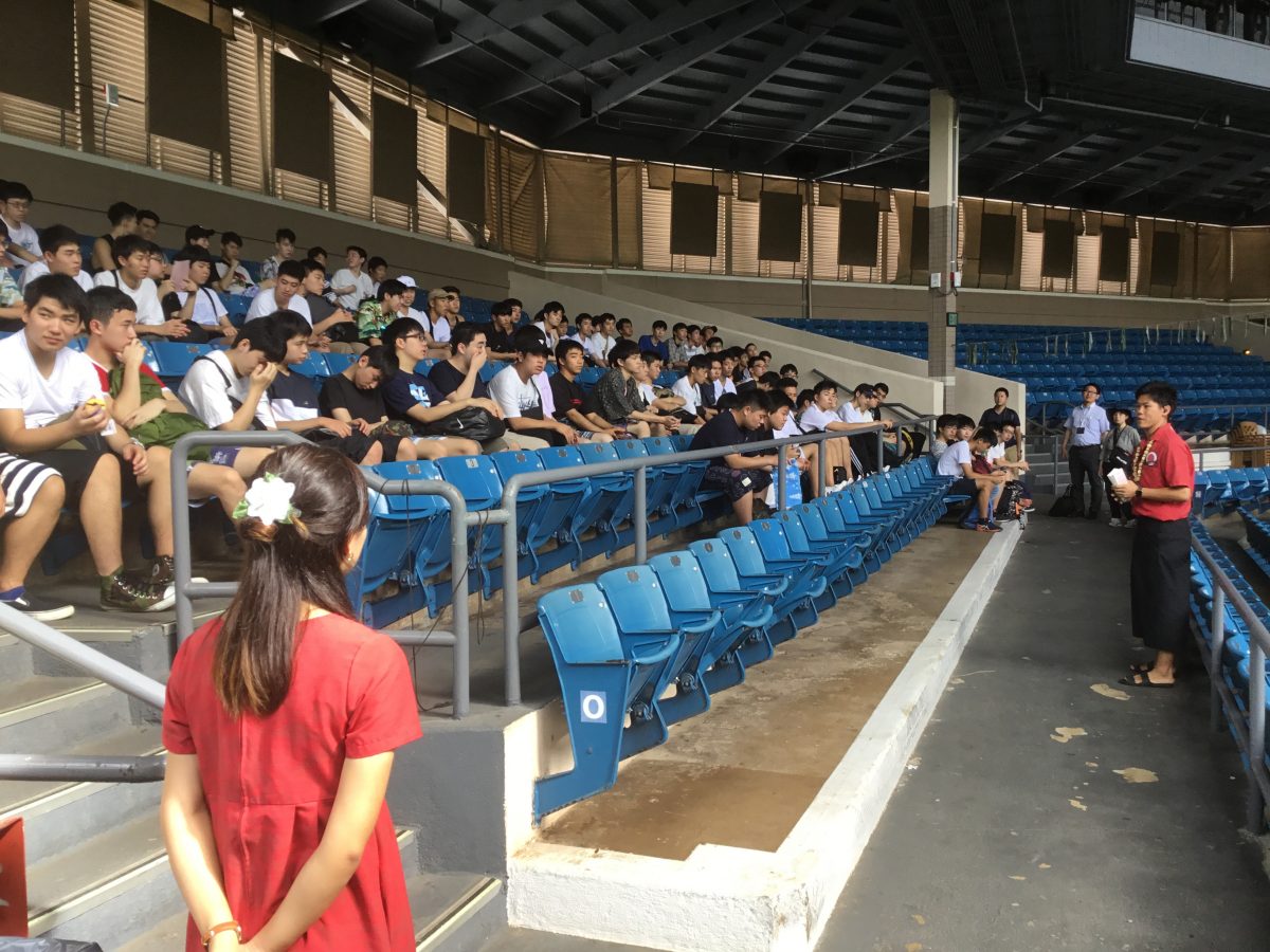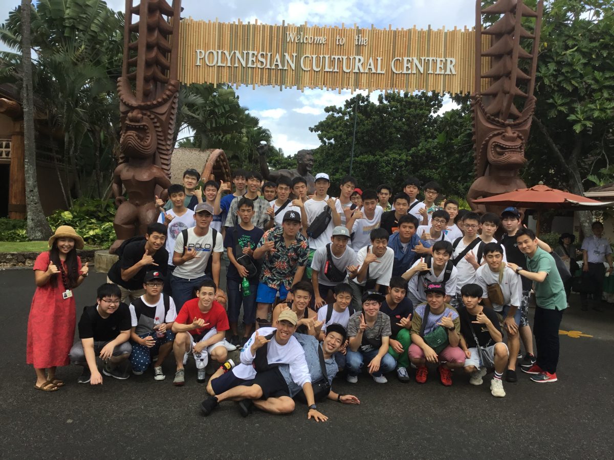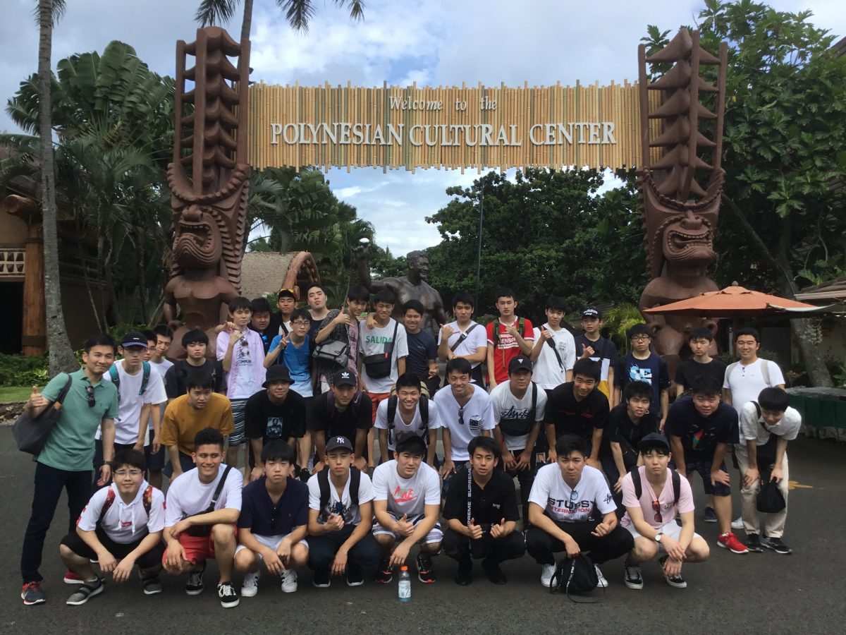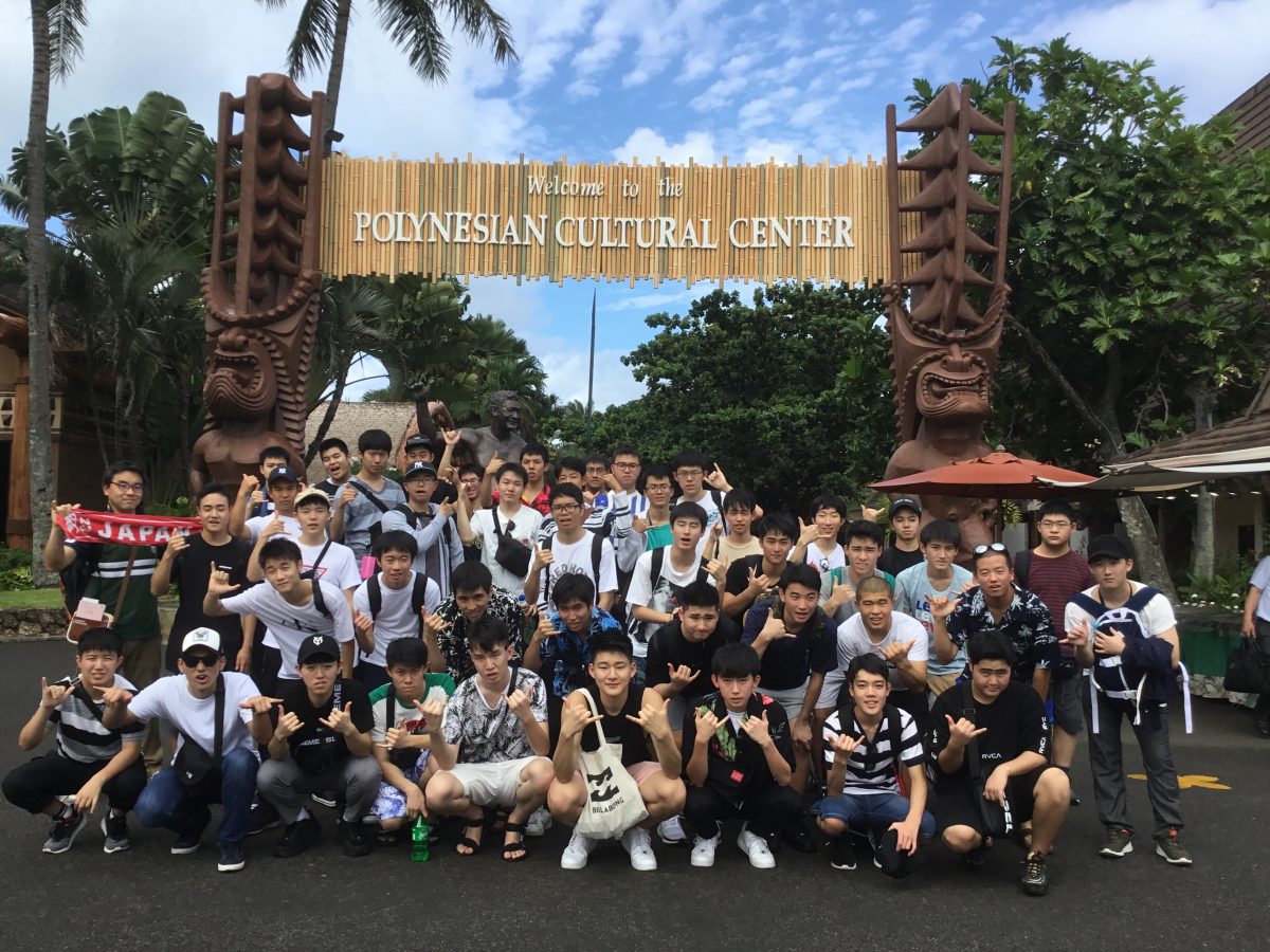 高校修学旅行B団2班 ポリネシアンカルチャーセンターにいます