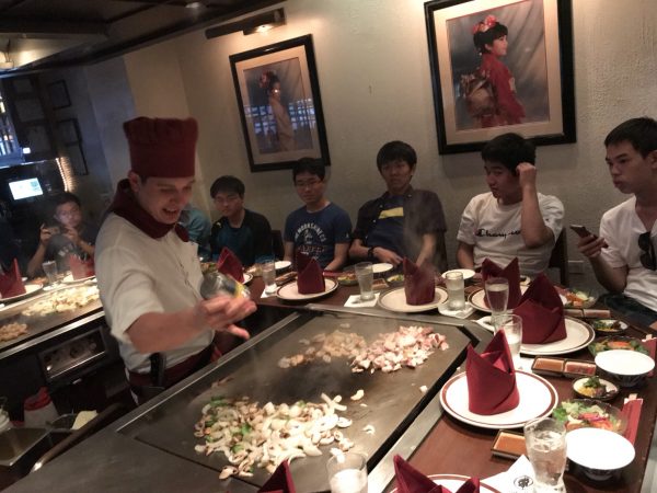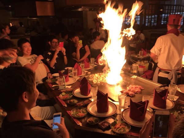 1班の5日目は、自主研修です。マジックアイランドにてクラス毎に写真を撮り、その後班毎に分かれました。事前学習にて立てられた計画に沿って、行動をしました。ビーチを散歩したり、免税店で買い物をしたり、おみやげをたくさん買ったり‥思い思いに過ごしたようです。夜は田中オブトーキヨーにて、シェフの美技を見ながら、ステーキを食べました。