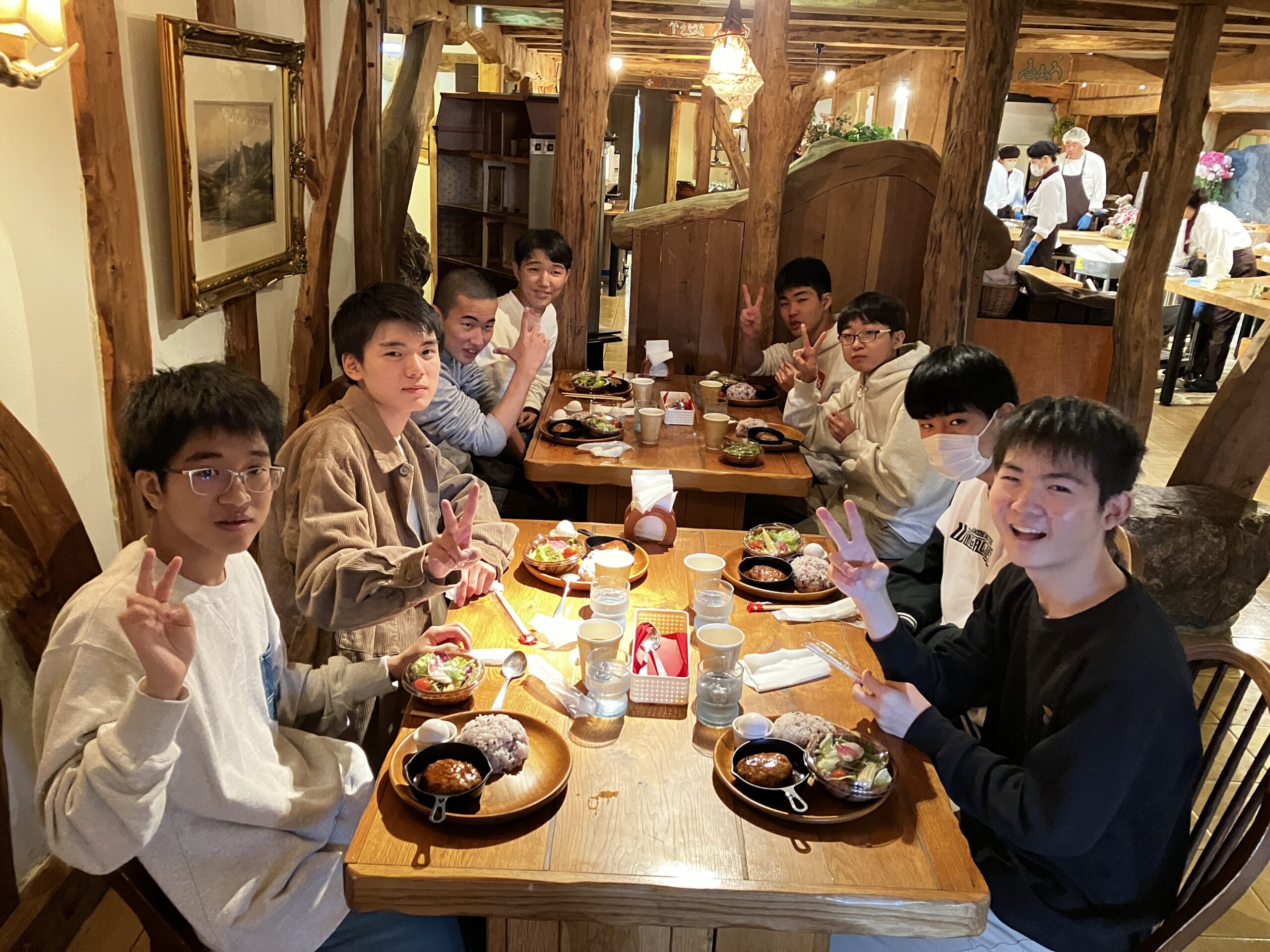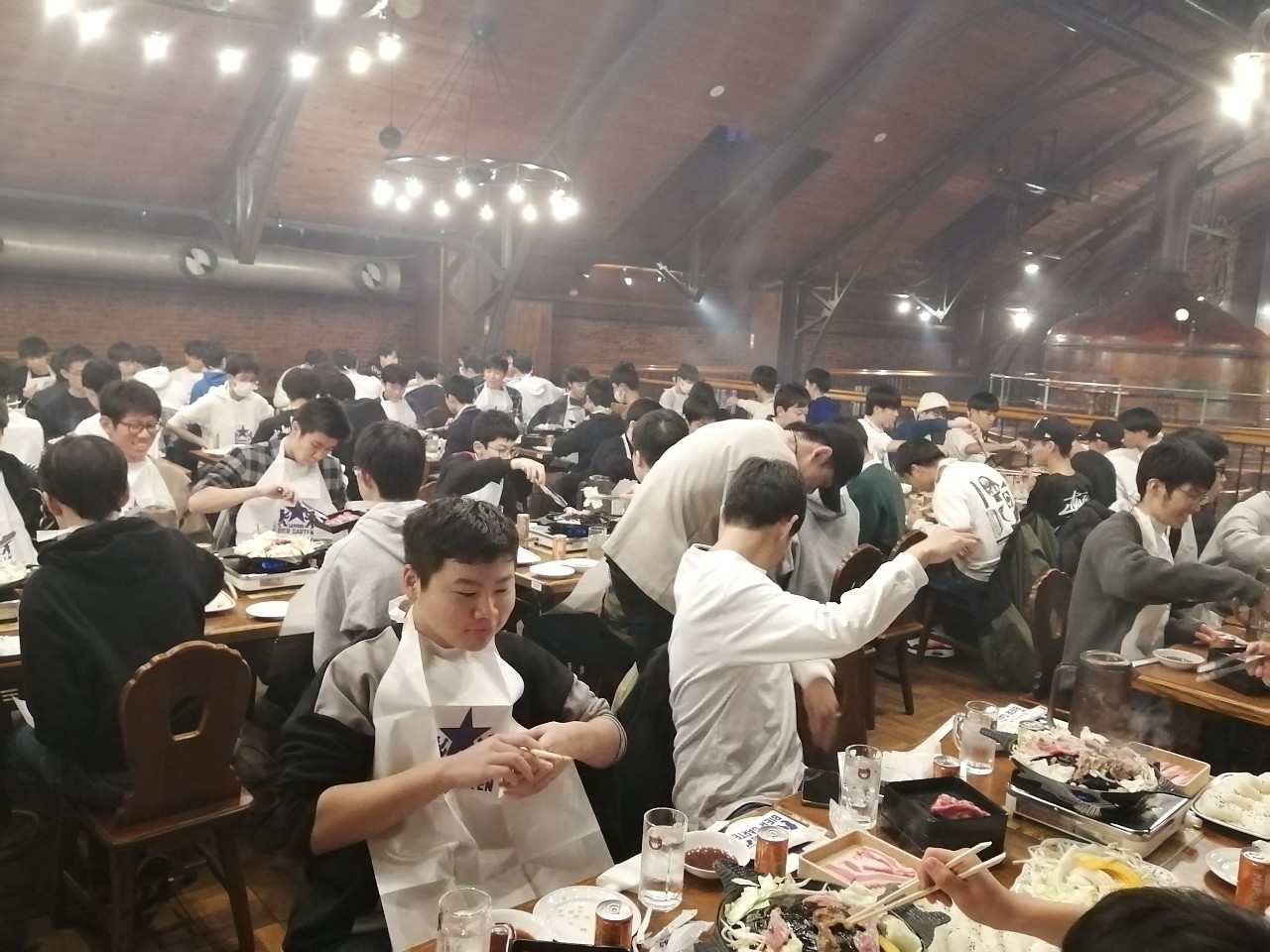 1日目の締めは、『サッポロビール園』でのジンギスカン食べ放題です。道の駅などでソフトクリームや軽食をとっている生徒がいたにも関わらず、各自で調理をしながら、制限時間ギリギリまで食事を楽しみました。